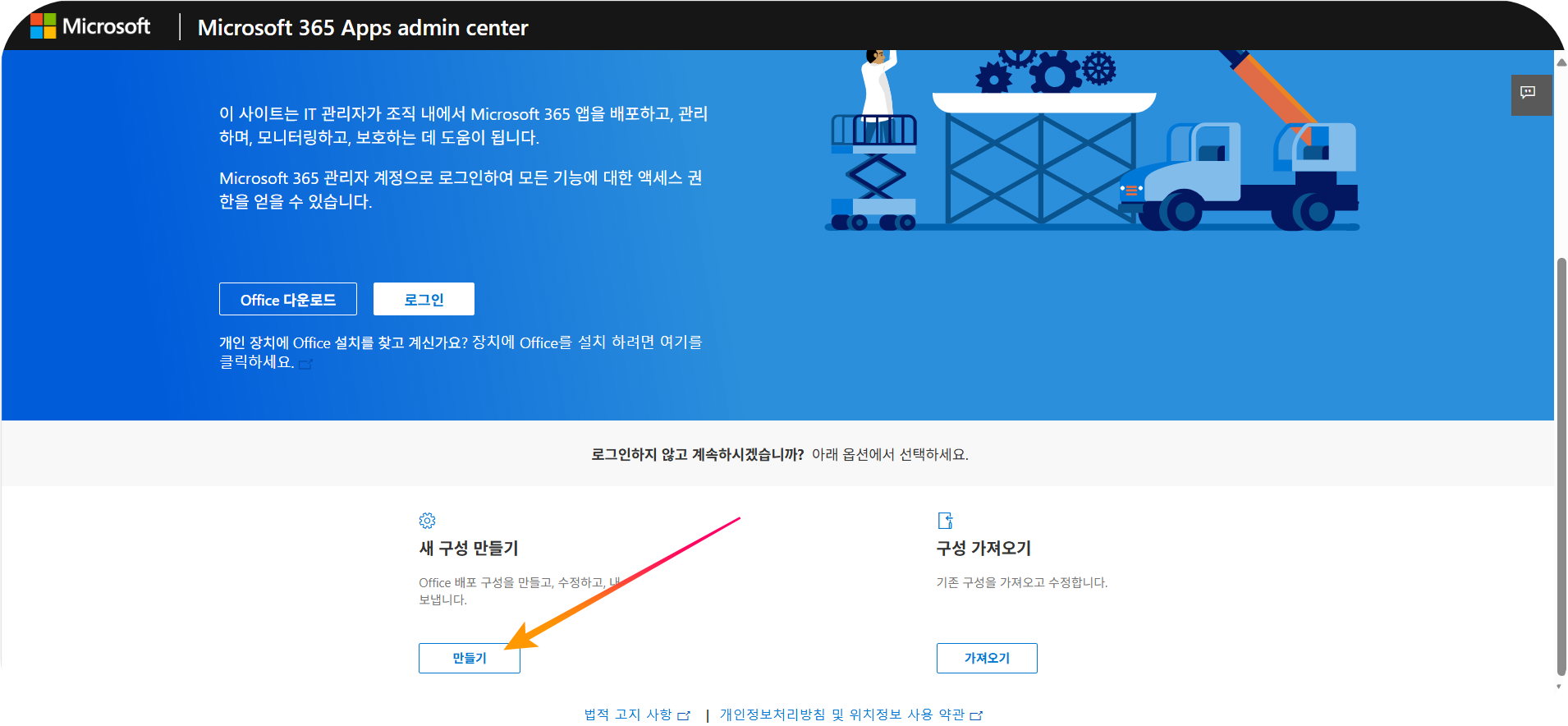 이제 본격적으로 설치 파일을 만들어 보겠습니다. Microsoft는 사용자가 직접 원하는 구성으로 Office를 설치할 수 있도록 공식 웹사이트를 제공합니다.