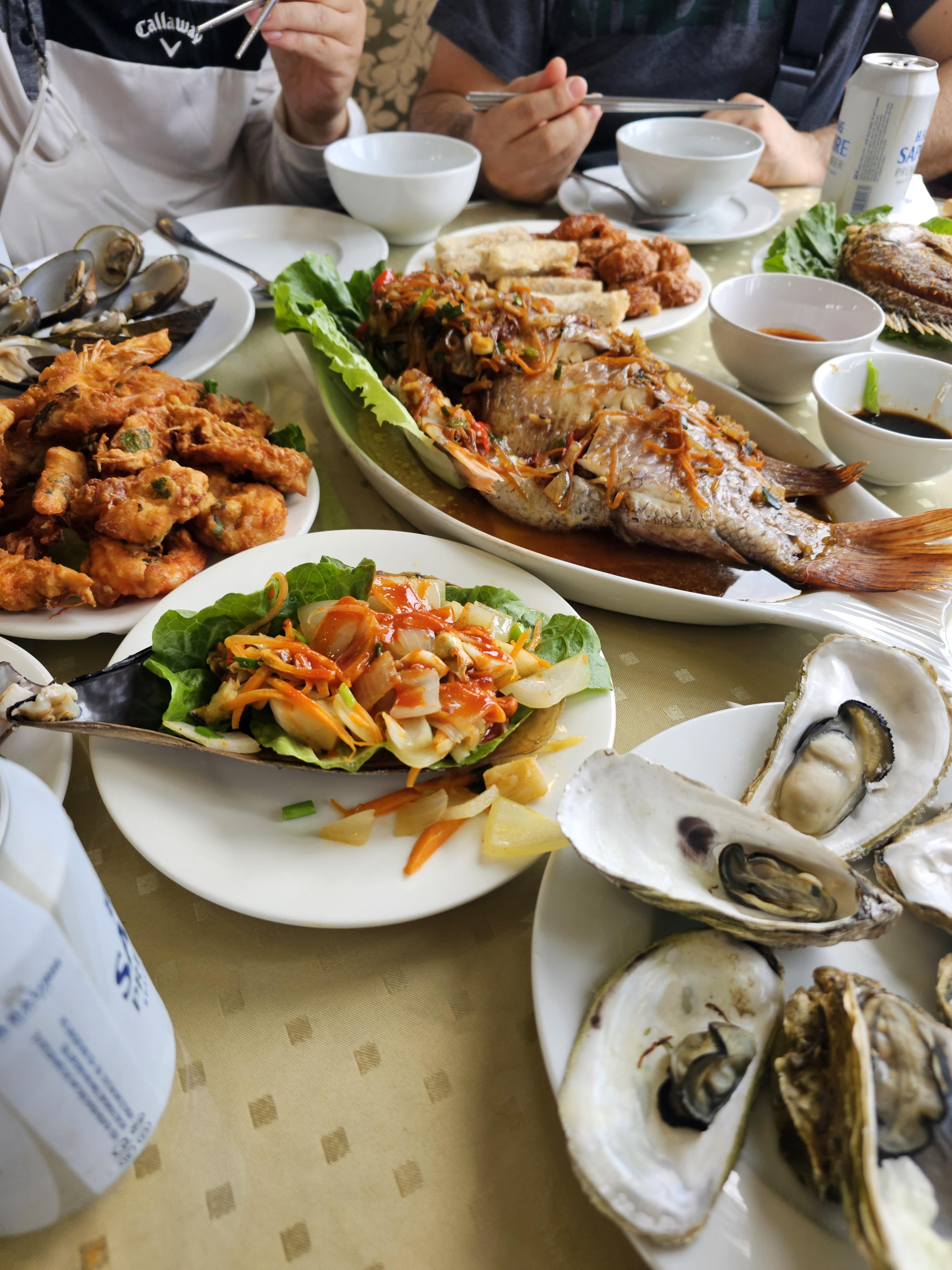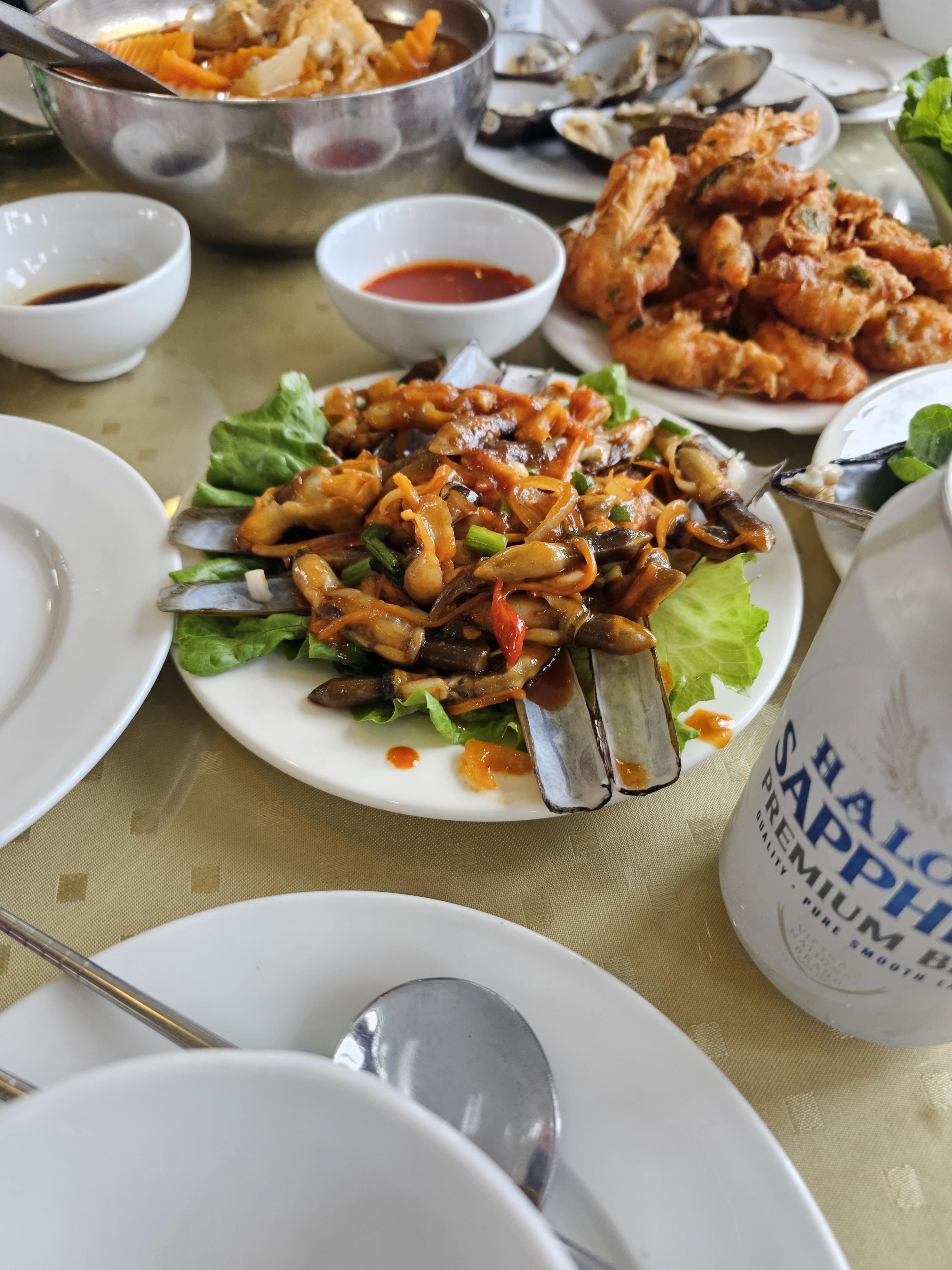 티톱섬 관광을 마치고 선상에서 씨푸드로 점심을 먹었습니다.