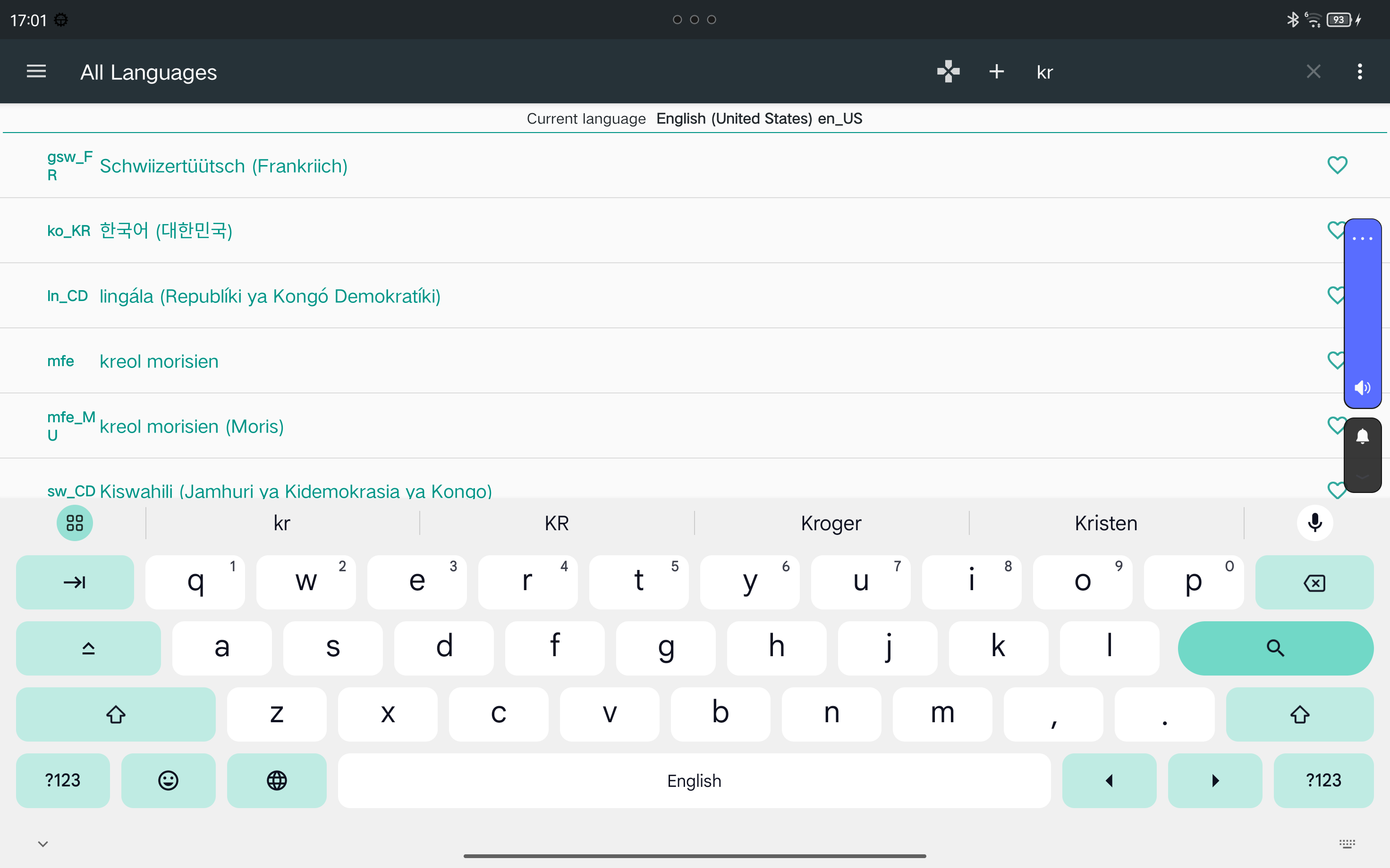 6. Language Setting 앱을 실행하고 언어를 ko-kr로 변경해 주면 한글화가 끝납니다.