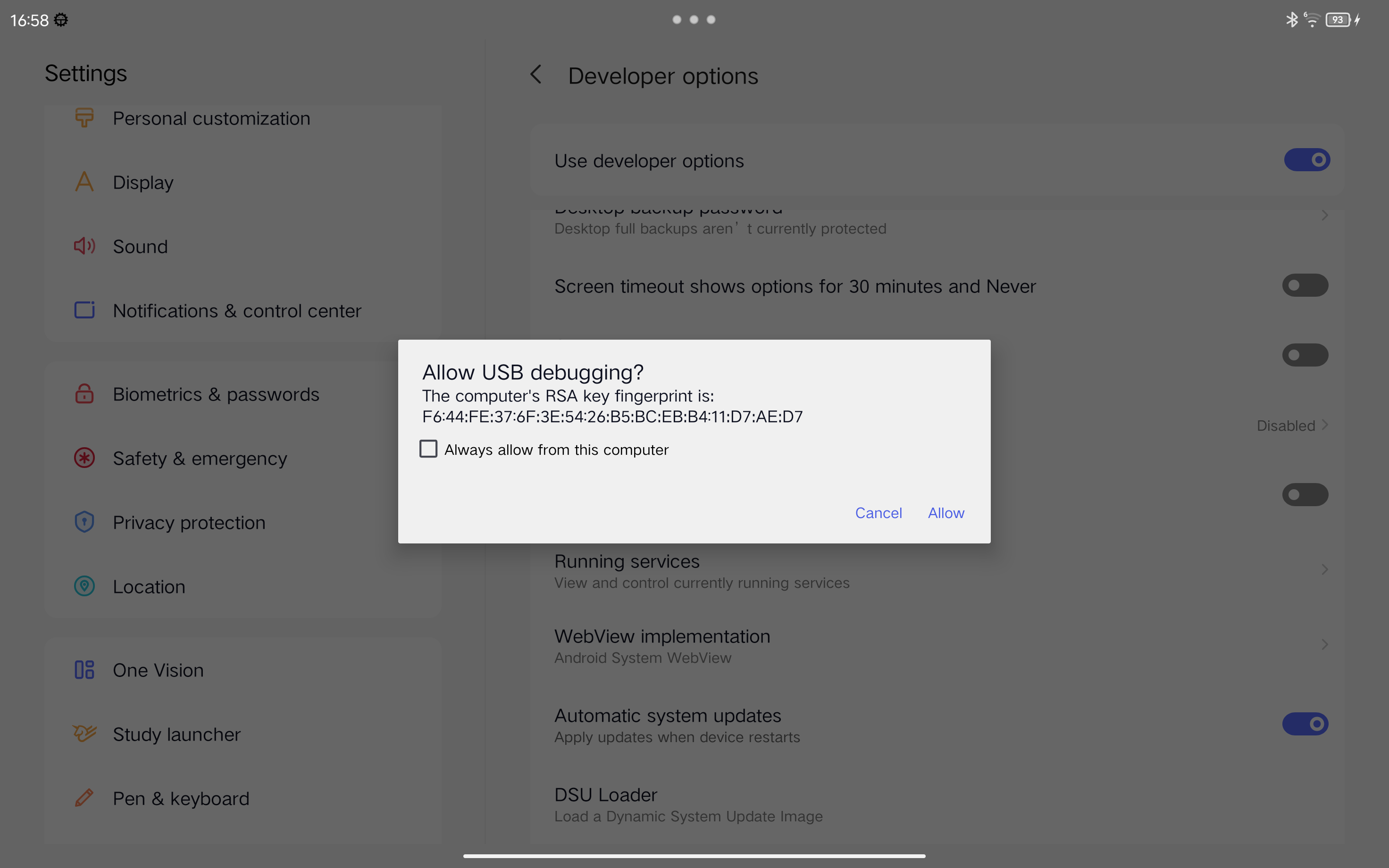 연결하면 Allow USB debugging?이라는 문구가 뜨고 Allow를 눌러 줍니다.