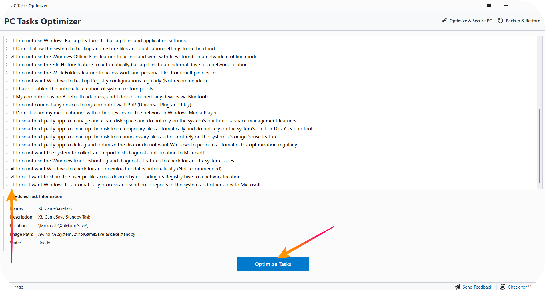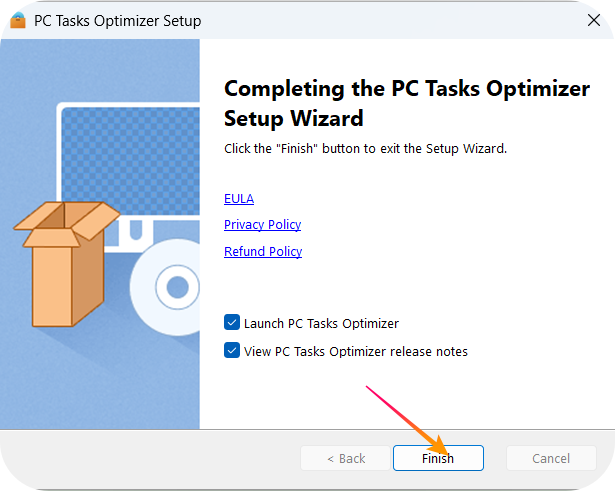 'Launch PC Tasks Optimizer'를 체크하면