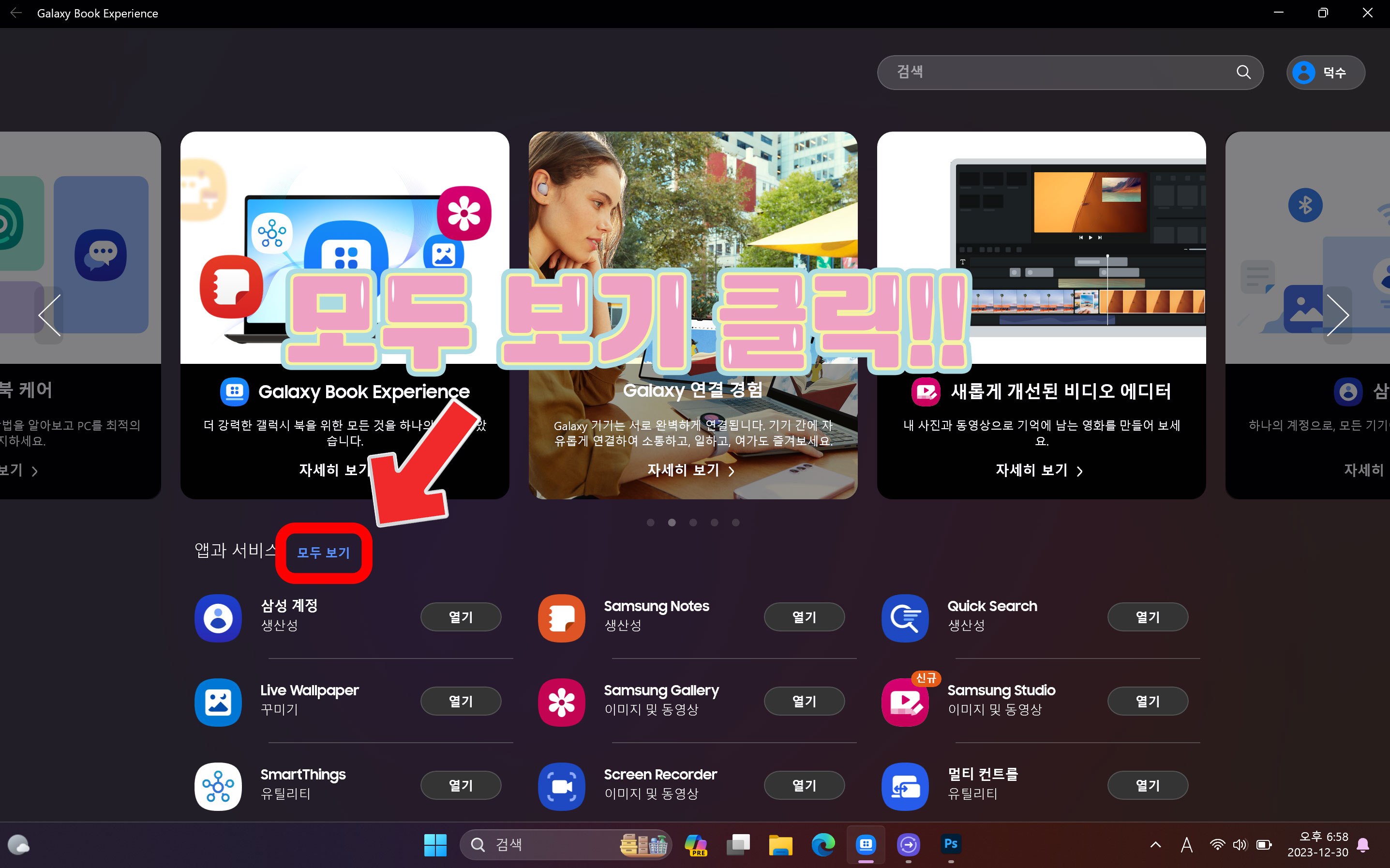 1. 노트북내에 Galaxy Book Expierence를 클릭합니다.
