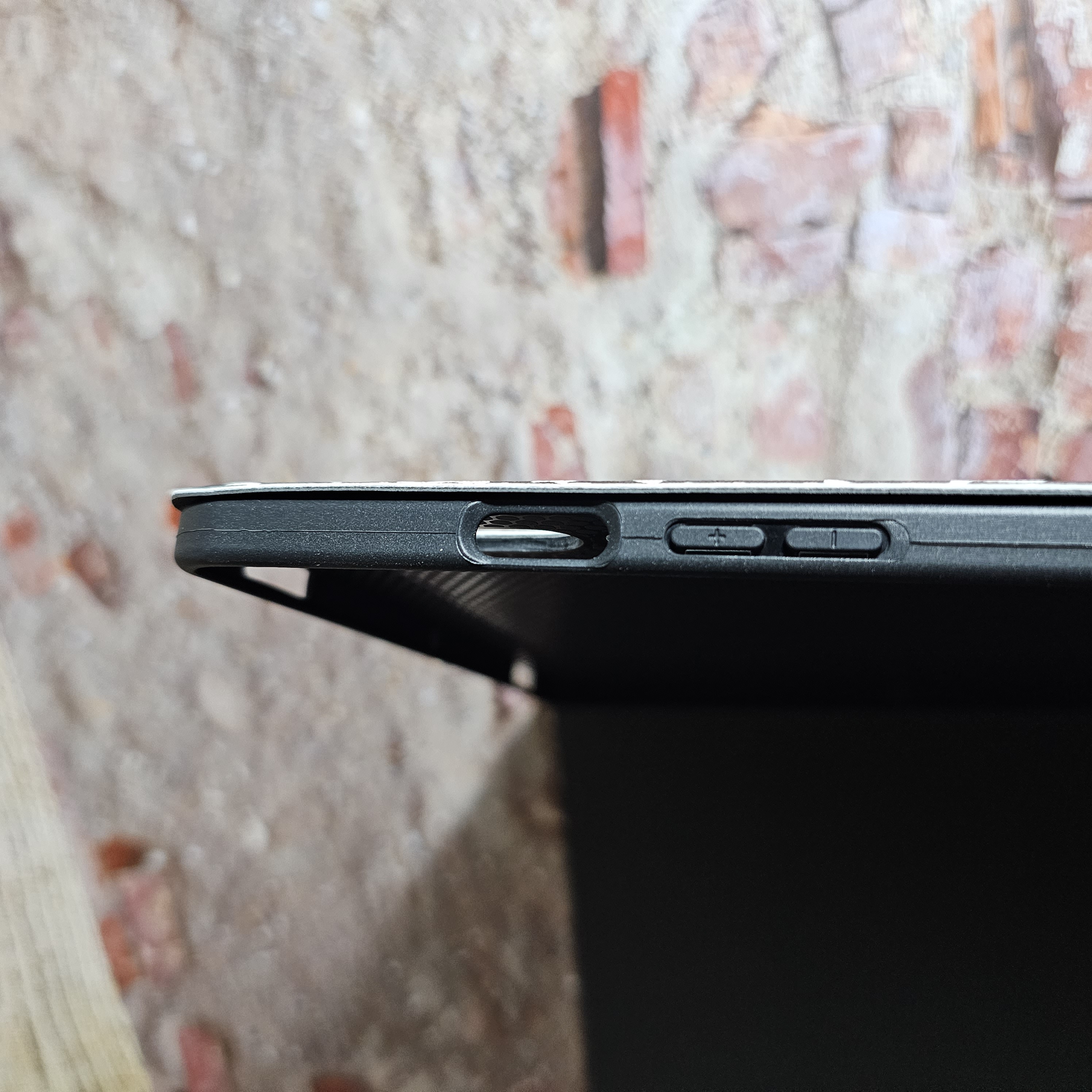 스피커, 전원 버튼, C-type 충전 단자 부분은 크기에 맞게 재단 되어 있습니다. 볼륨 버튼은 잘 눌러집니다.