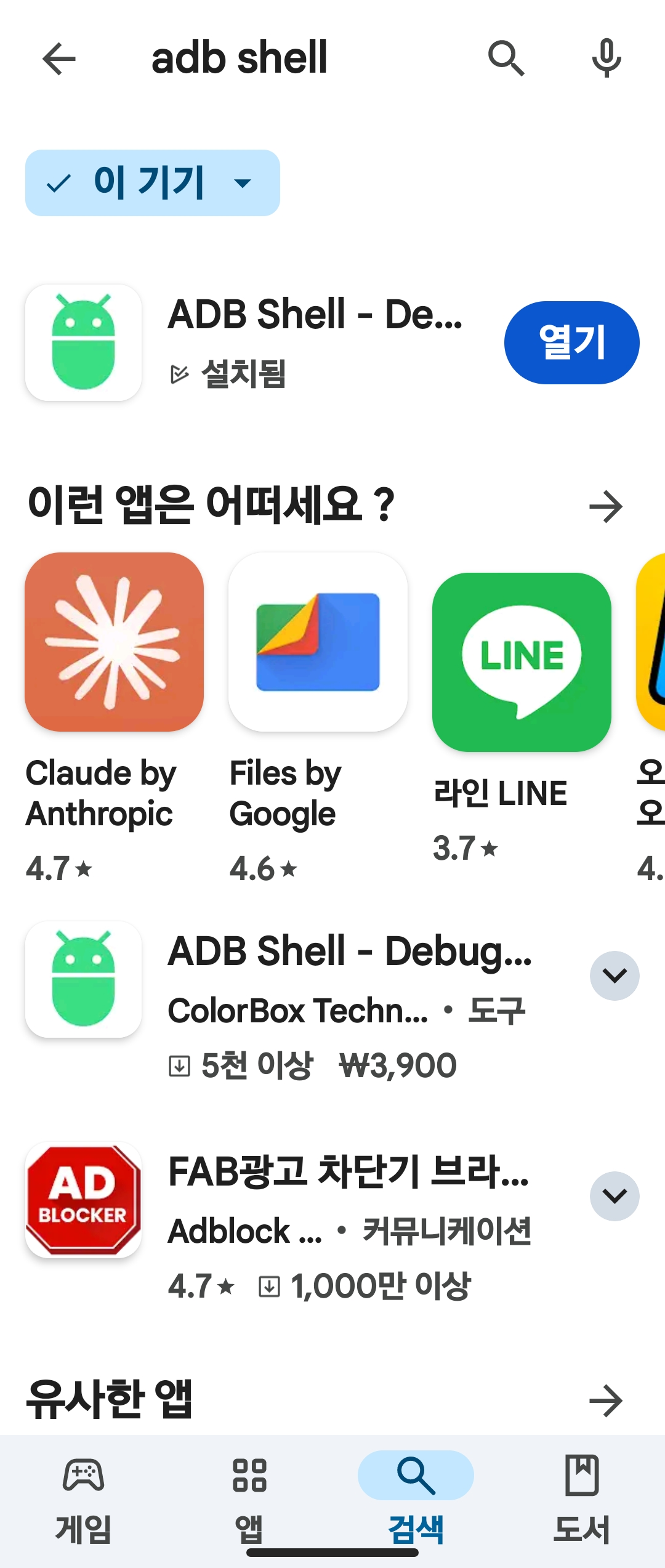 2. 구글 플레이어에서 adb shell을 검색 후 다운로드하여 실행합니다.