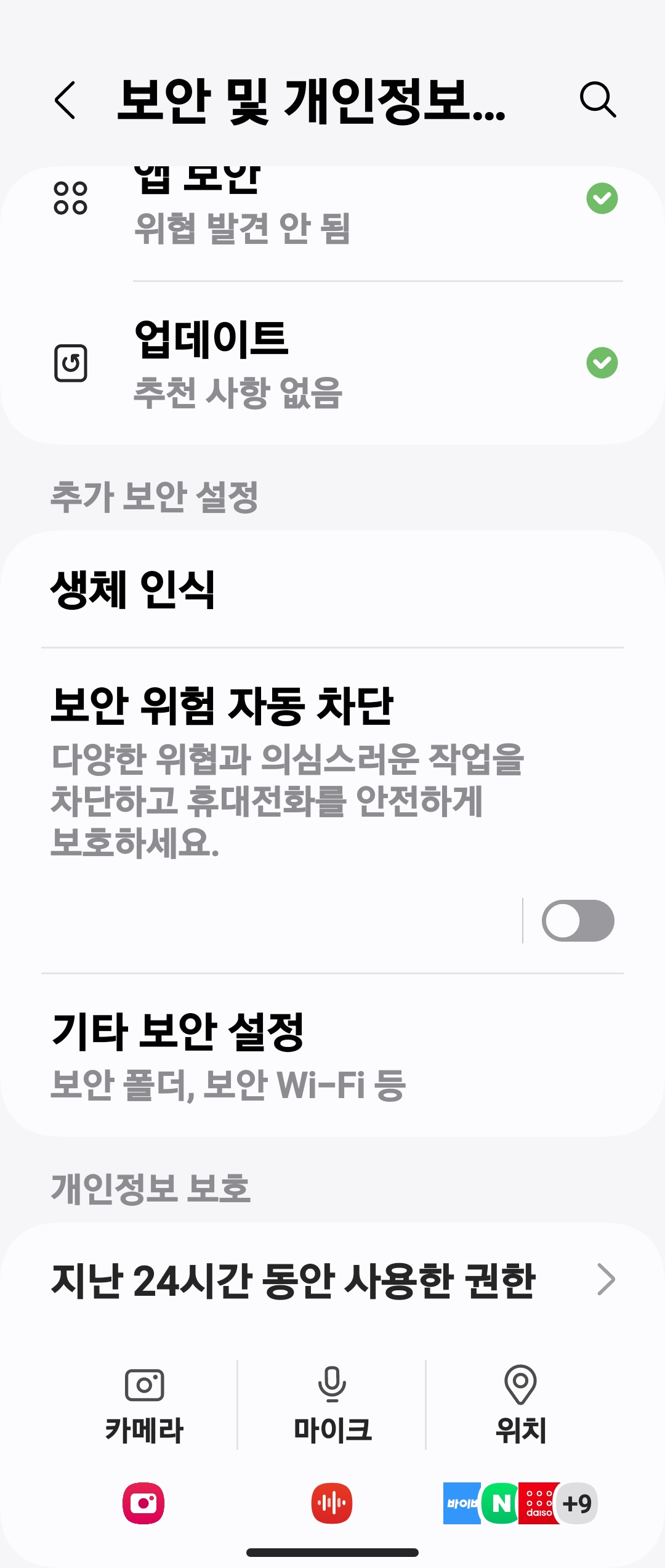 무음 설정 완료 후 보안 위험 자동 차단을 다시 활성화합니다.