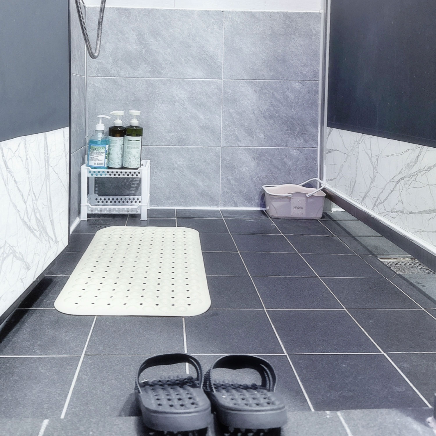 전에는 없었는데 바닥에 패드가 있어 샤워하다가 미끄러지지 않도록 배려를 해놓았습니다.