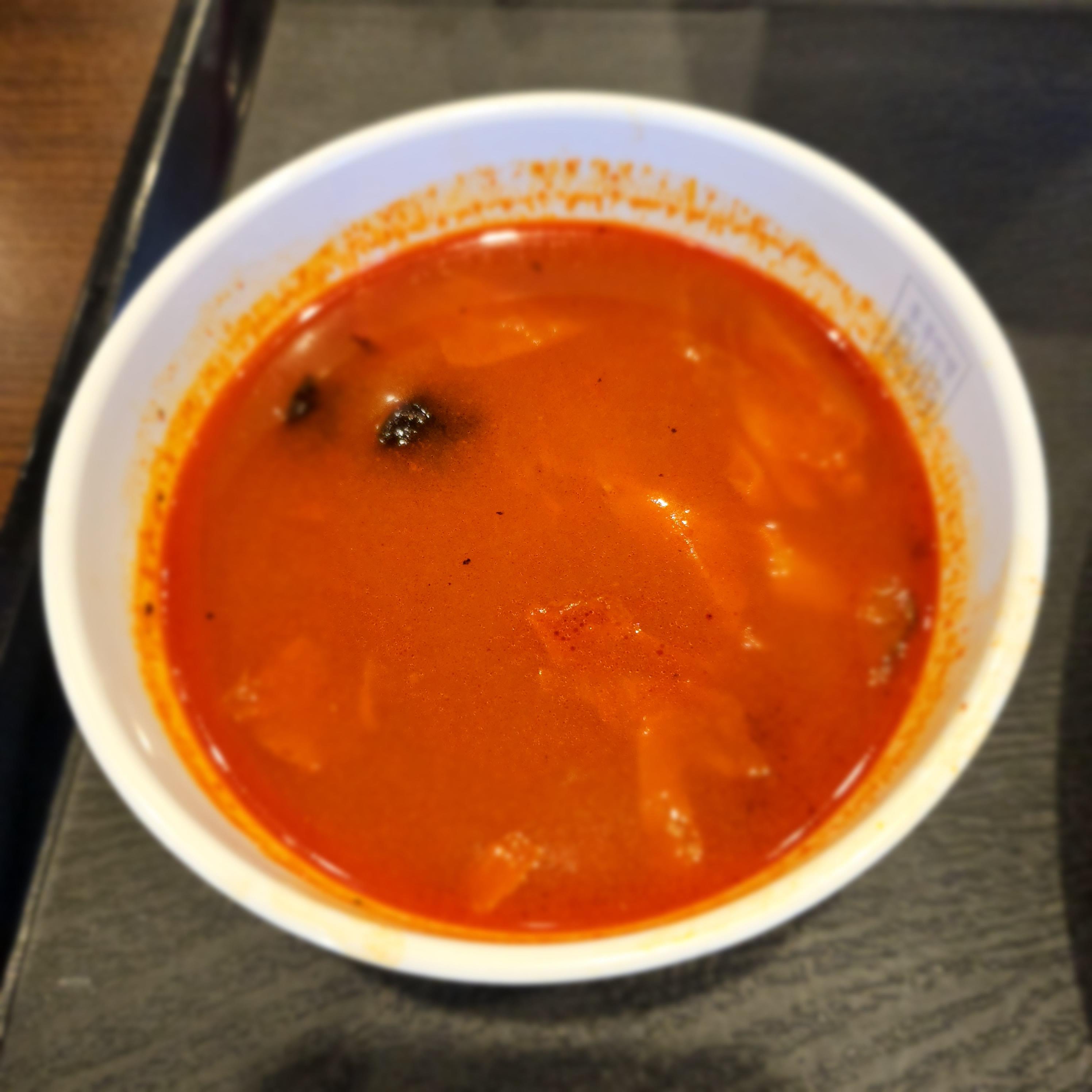 국물 안에 홍합 1개, 오징어 및 양배추가 들어가 있습니다.
