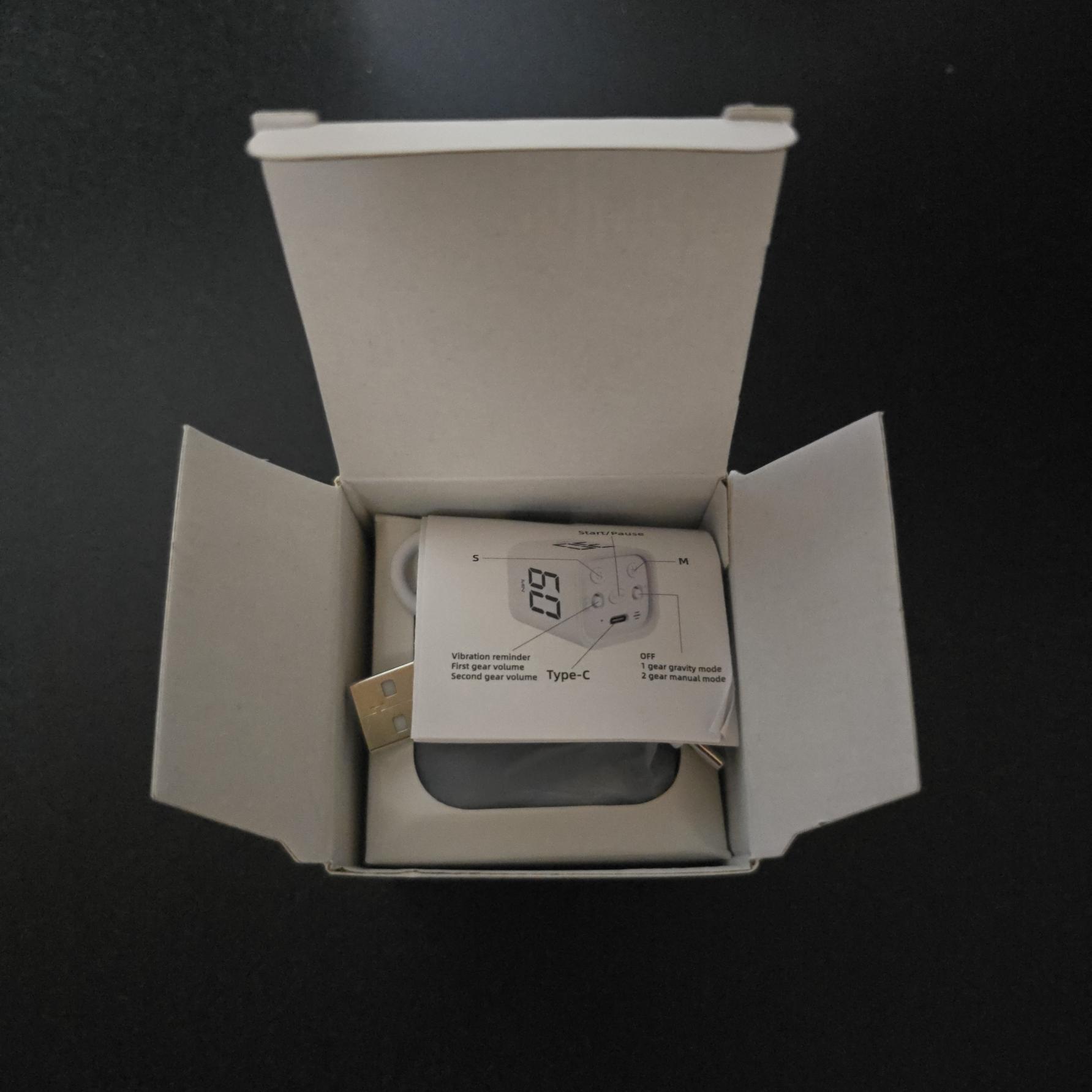 - 진동이나 소리로 알림을 설정할 수 있습니다. 알림을 끄는 방법은 전면 led 창이 위로 향하게 하면 멈춥니다. 중간에 led 창을 위로 향하면 타이머가 정지되고 다시 led창을 원래대로 하면 정지된 시간부터 다시 카운터가 됩니다.