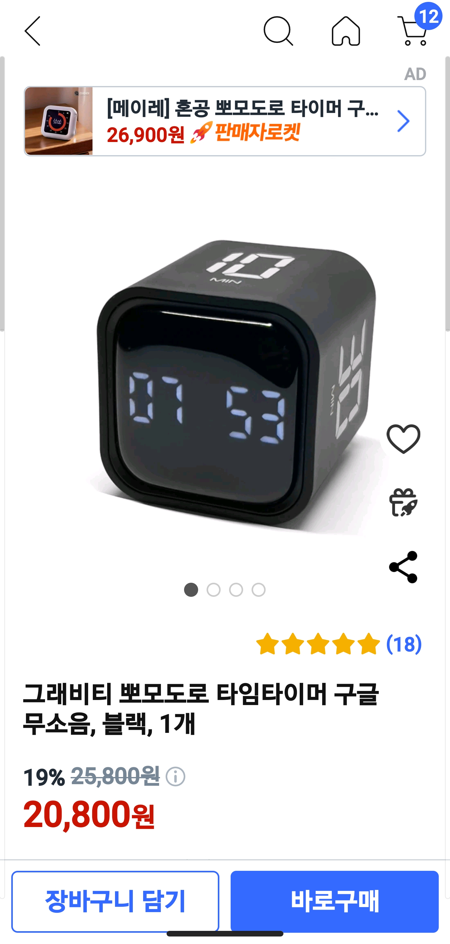 제품명을 그래비티 뽀모도로 타임 타이머 구글 무소음입니다.