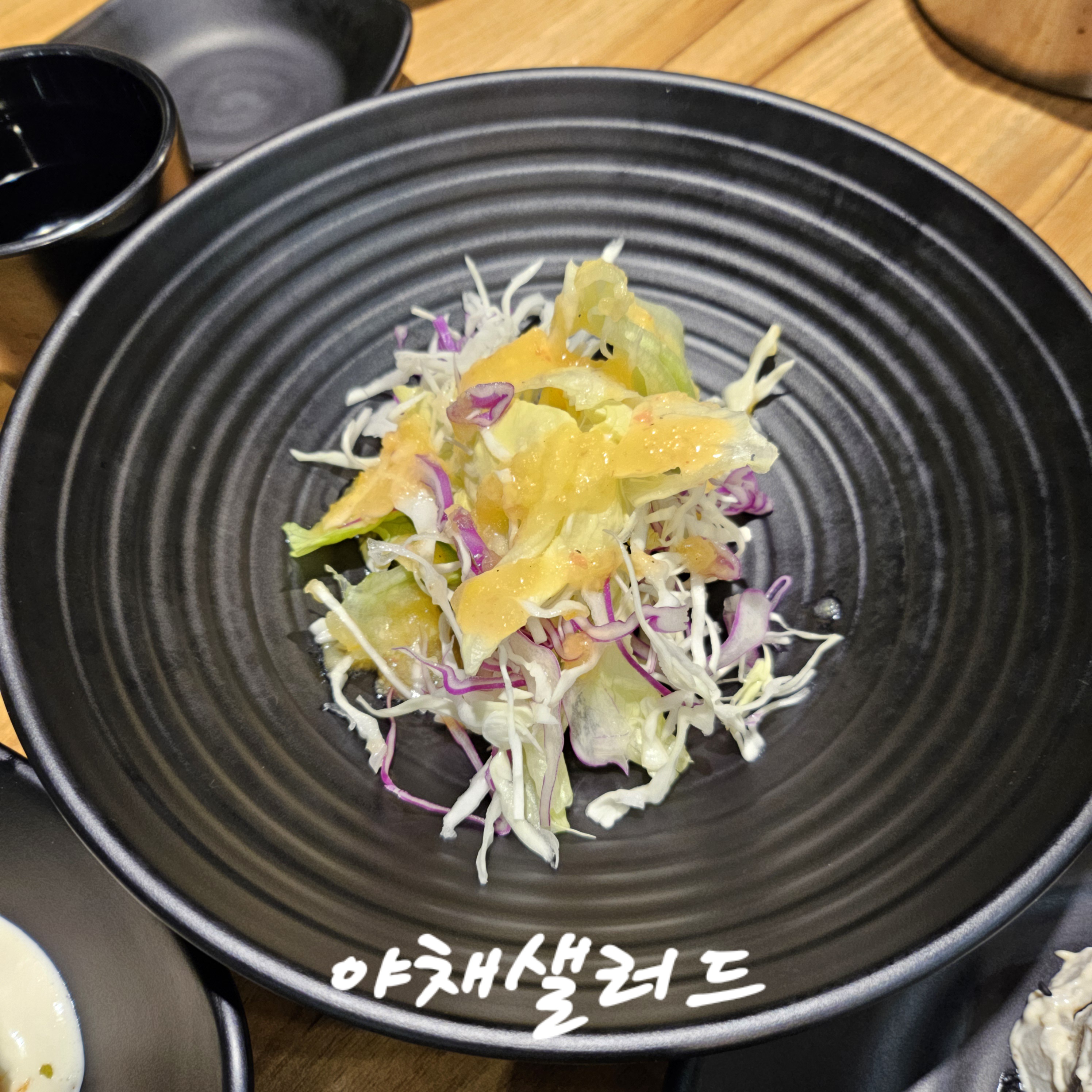 기본 반찬으로는 미역국, 고로케, 야채 샐러드, 우엉, 양배추절임이 나옵니다.
