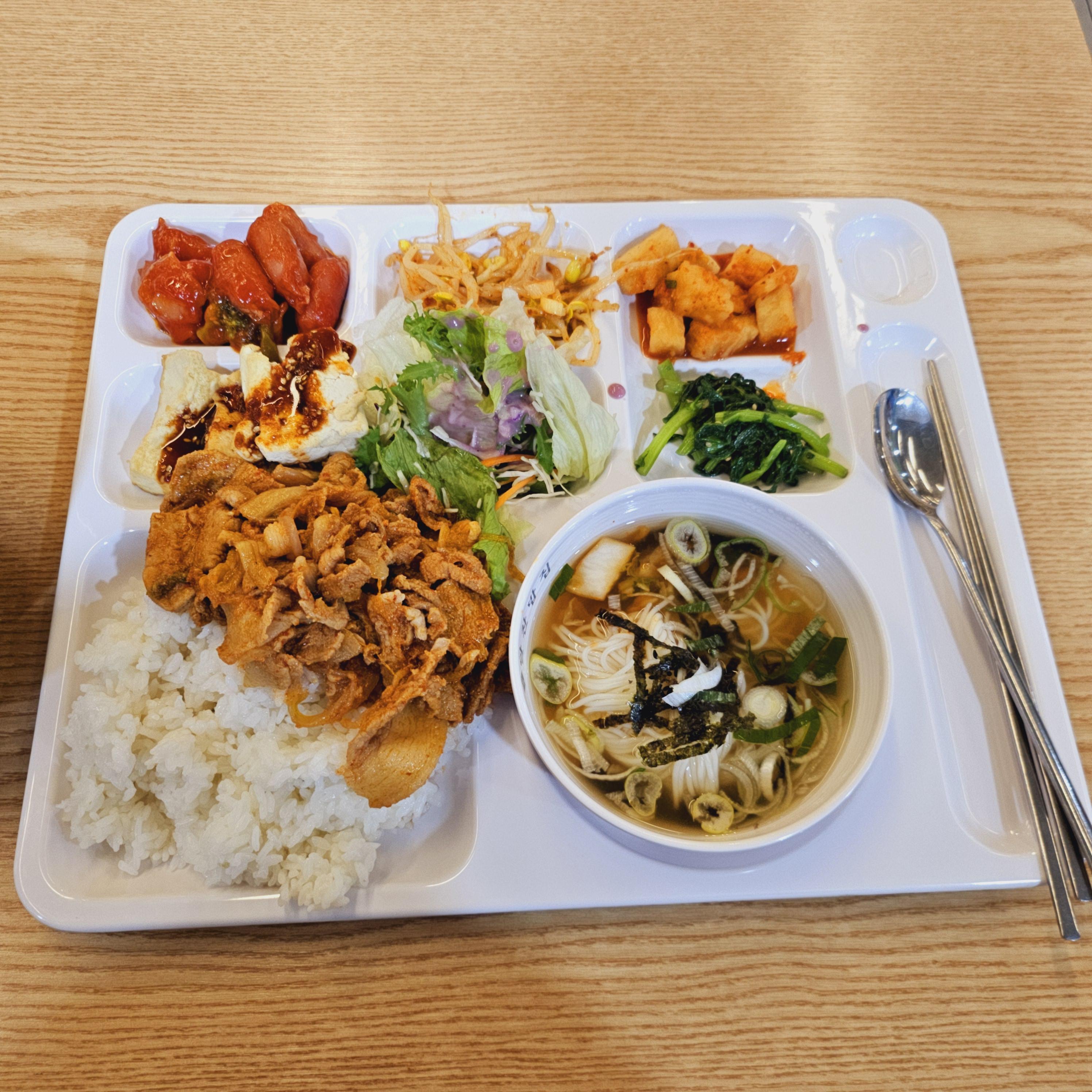 결제를 하면 식권이 나오고 배식대 앞 식권통에 넣고 밥과 반찬을 식판에 담고 자리에 앉아서 먹으면 됩니다.