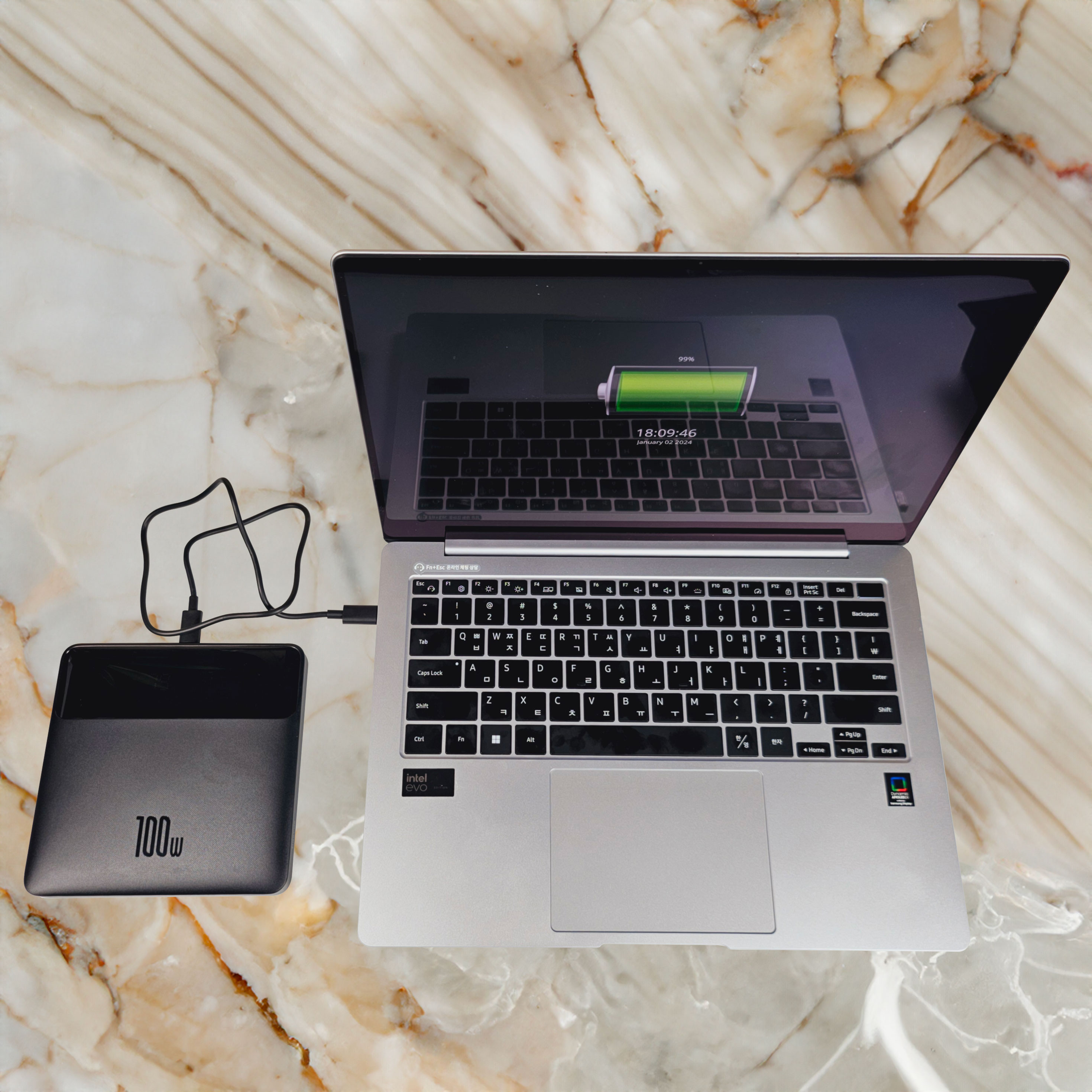 9. 100W 듀얼 C-Type E-Mark 케이블을 제공하여 고속충전이 가능하고 안전합니다.