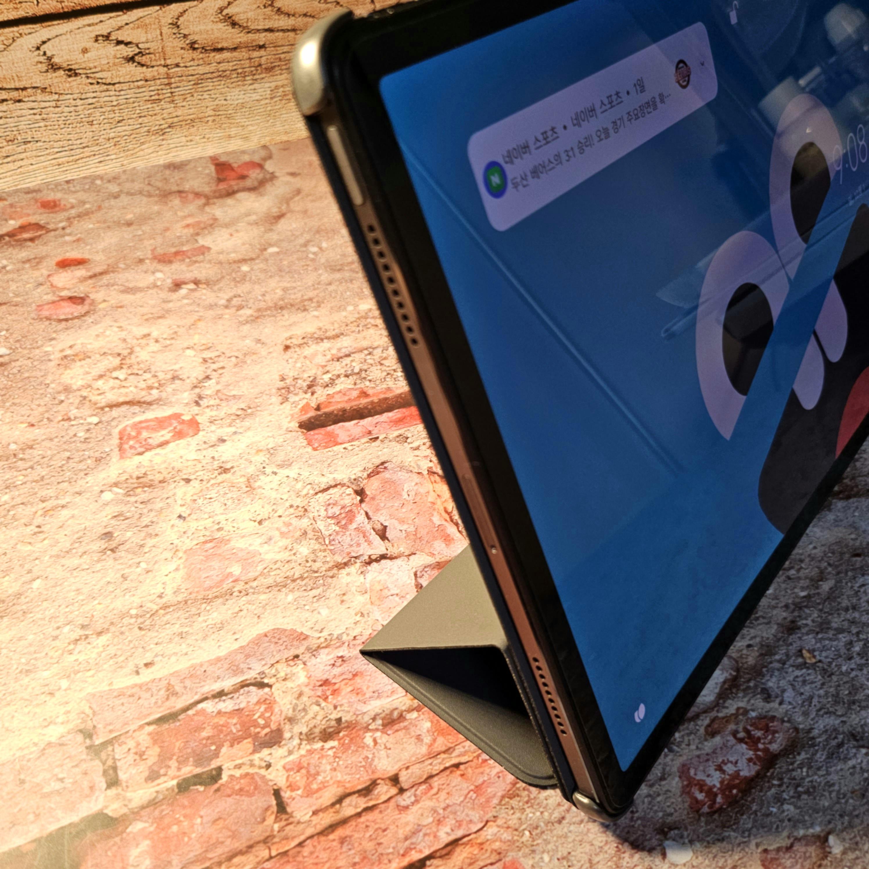 케이스 커버를 안쪽으로 접으면 자력이 있어 딱 달라붙어서 안정적으로 거치할수 있습니다.