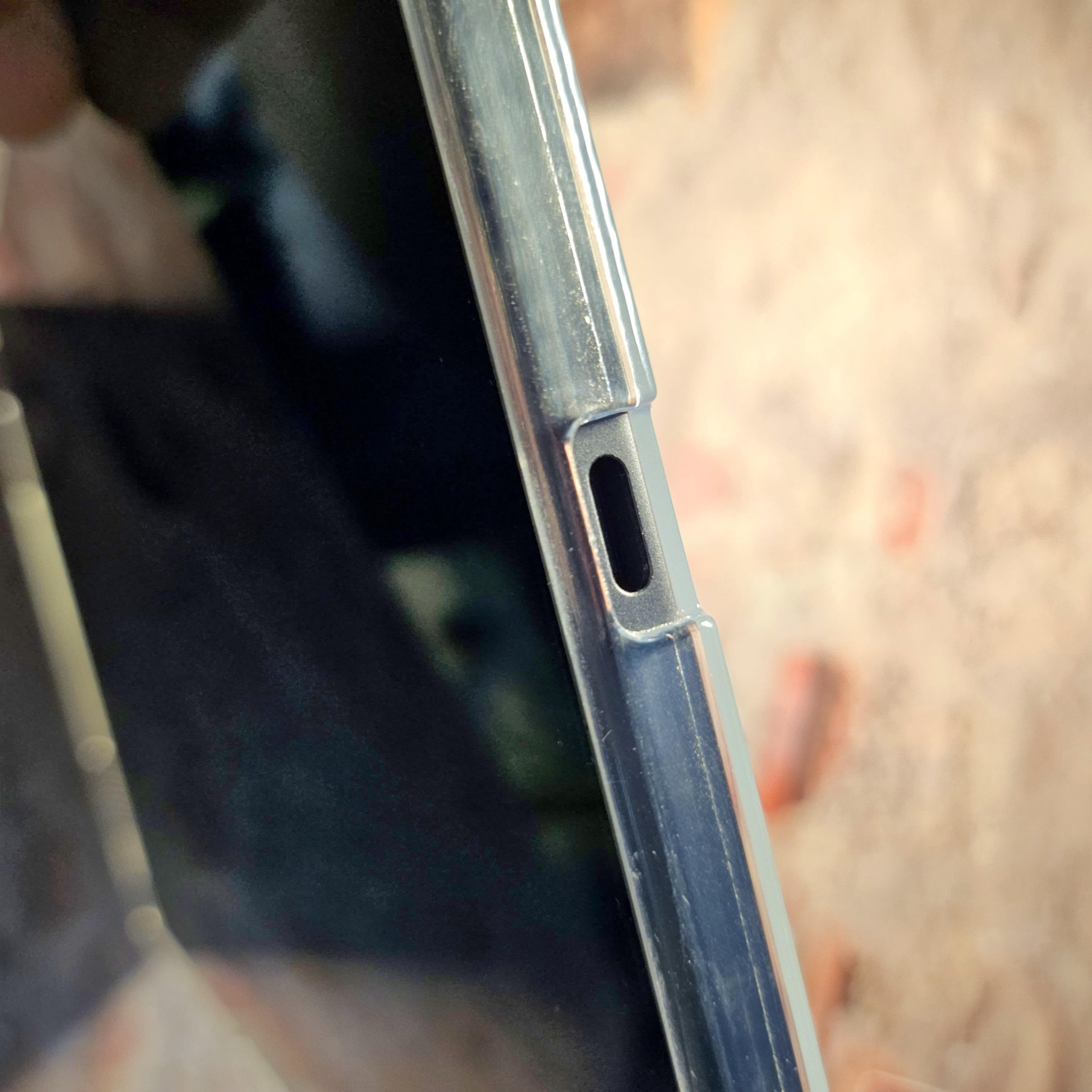 카메라, 펜 넣는 부분 및 볼륨버튼 사진입니다. 케이스를 끼우고 볼륨 버튼을 누르면 잘 눌러집니다. 마감도 깔끔하구요.