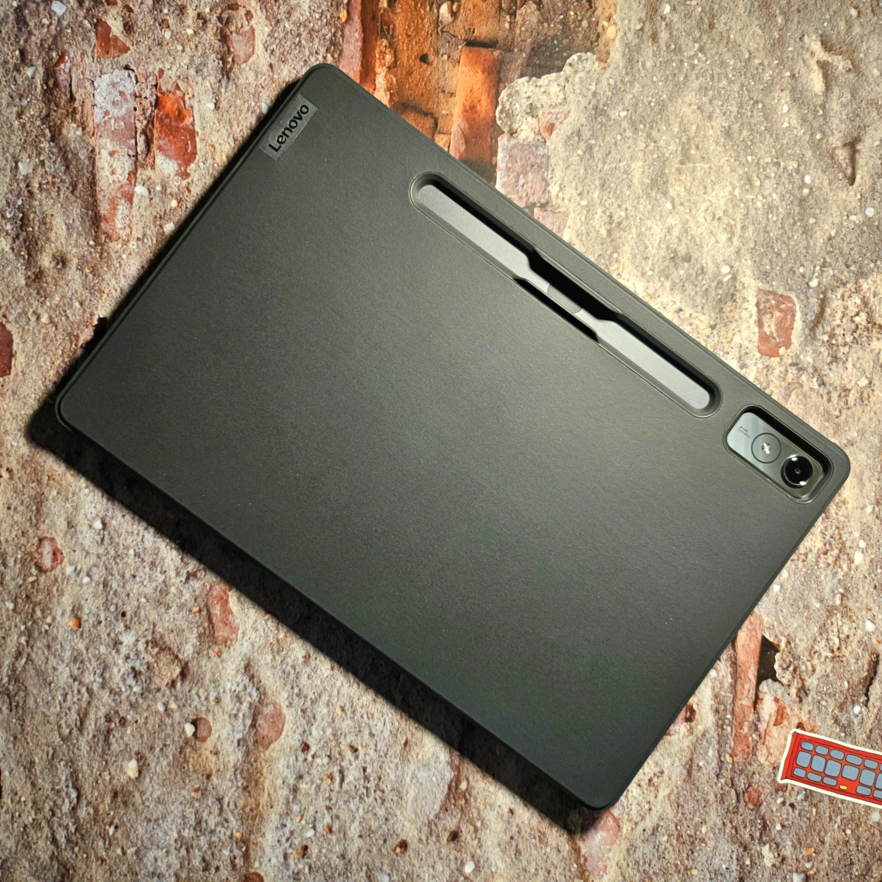 케이스 뒷면에는 레노버의 시그니쳐인 레노버 마크가 있습니다. 그리고 펜은 마그네틱 자석으로 불이는 타입인데 잘 떨어지지 않게 플라스틱으로 잘 감싸게 되어 있습니다.