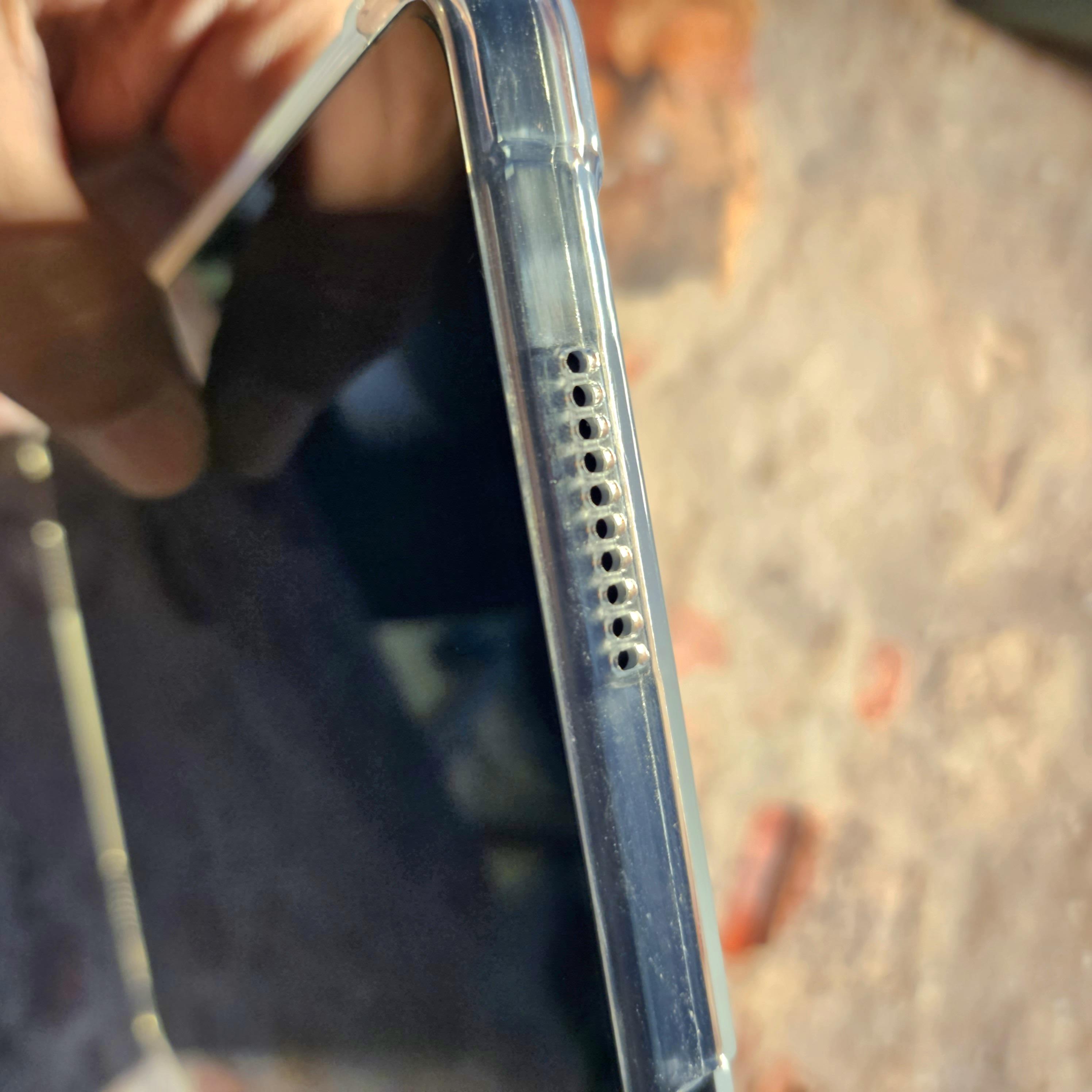 4면의 모퉁이는 떨어트려도 보호가 잘되게 되어있습니다.  4개의 스피커 부분에도 패드에 맞게 구멍이 잘 뚤려 있습니다.