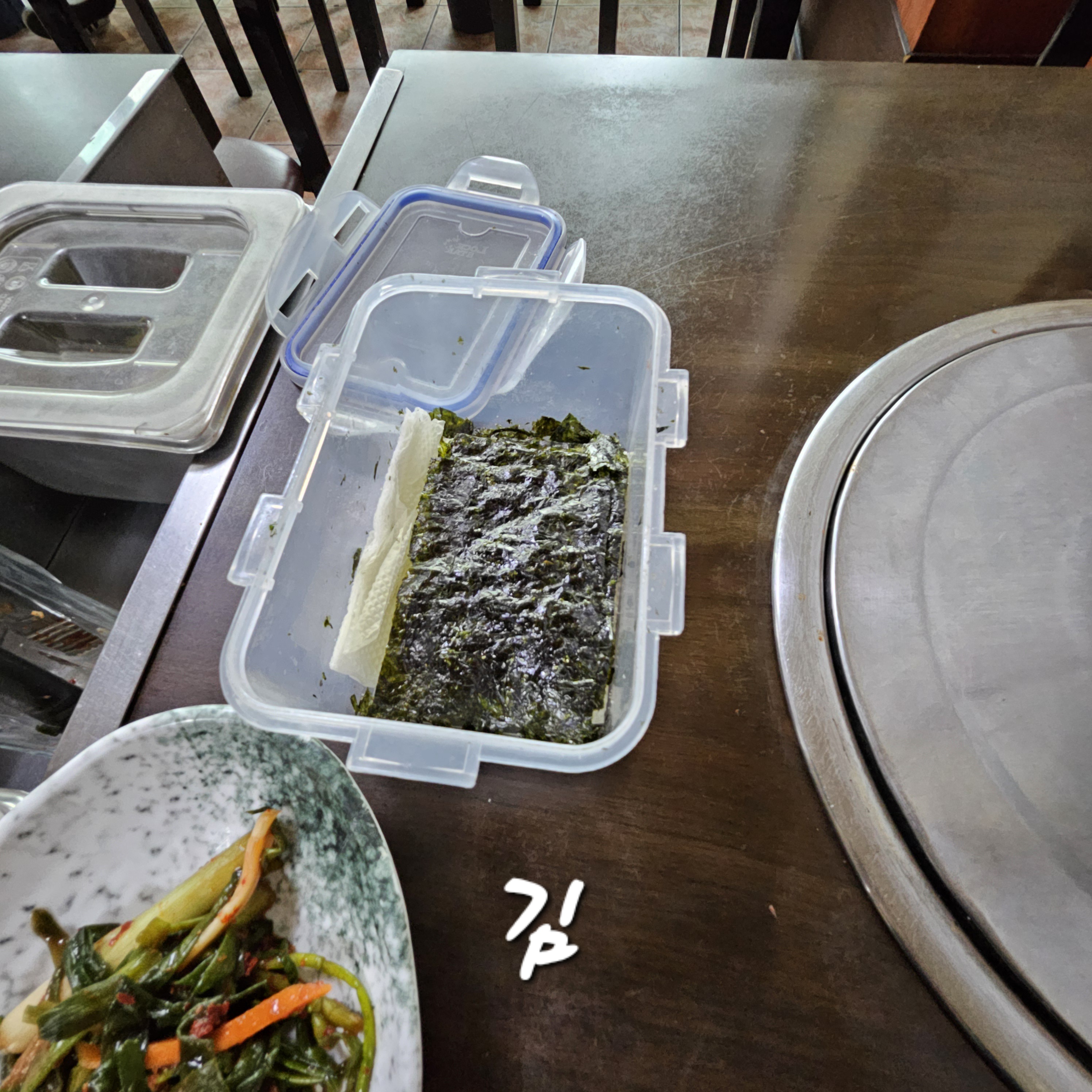 각 테이블 위에는 김통에 김이 가득 들어 있어서 좋습니다.