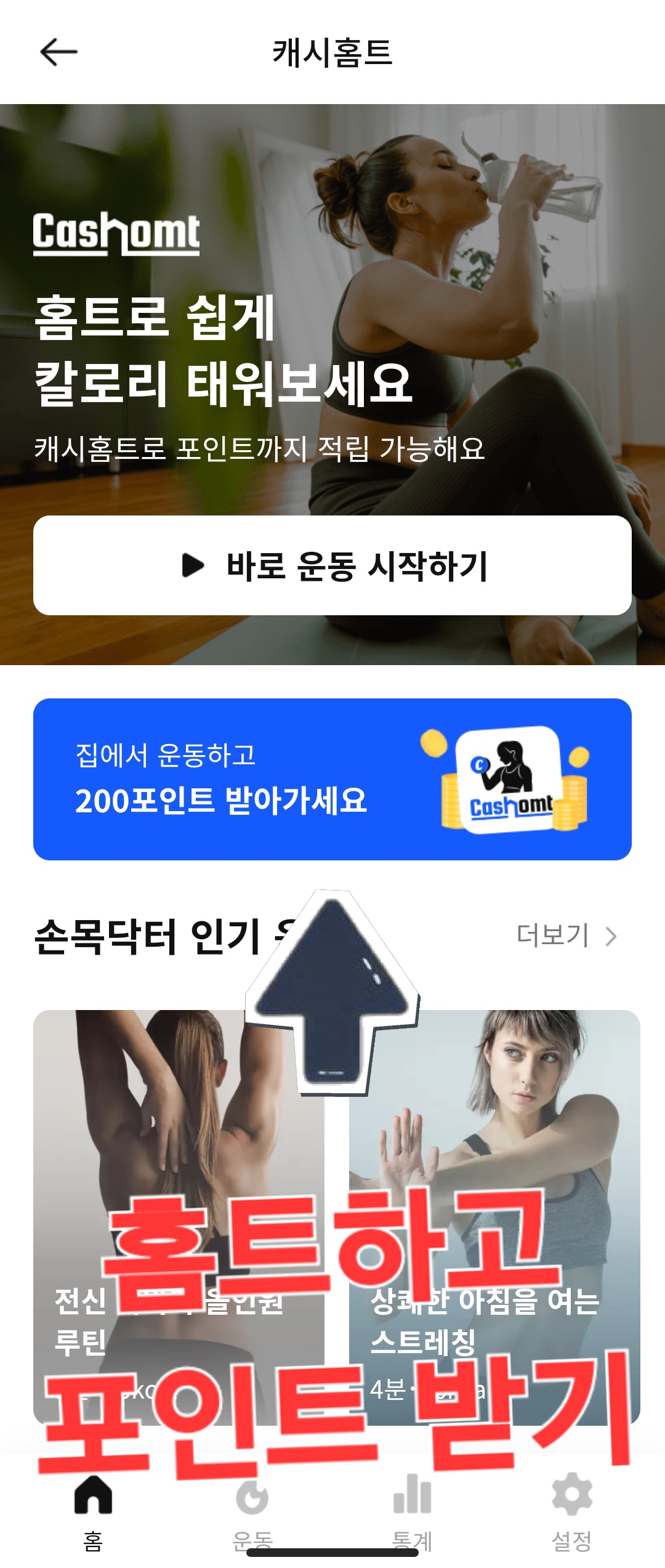 홈트 완료 시 200P