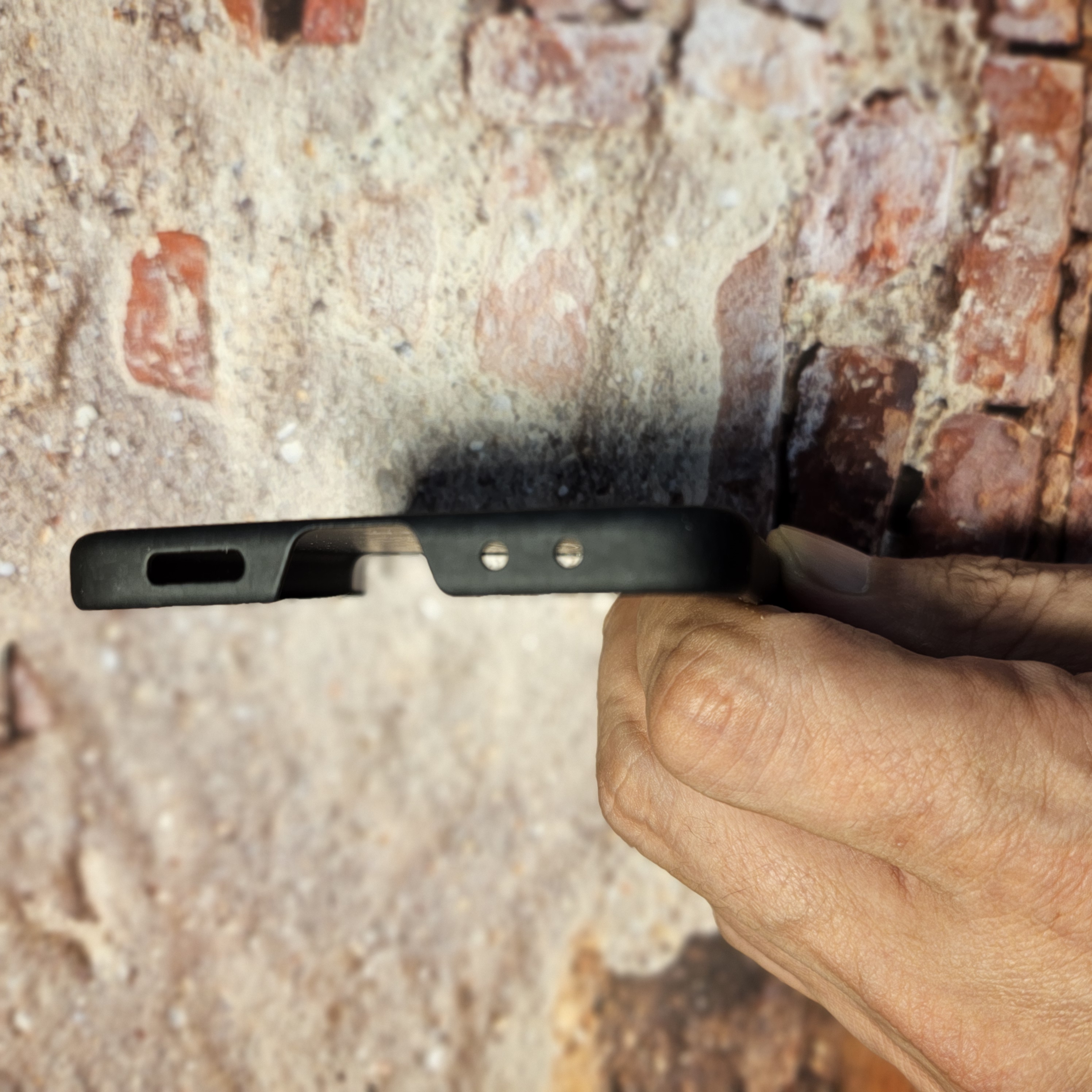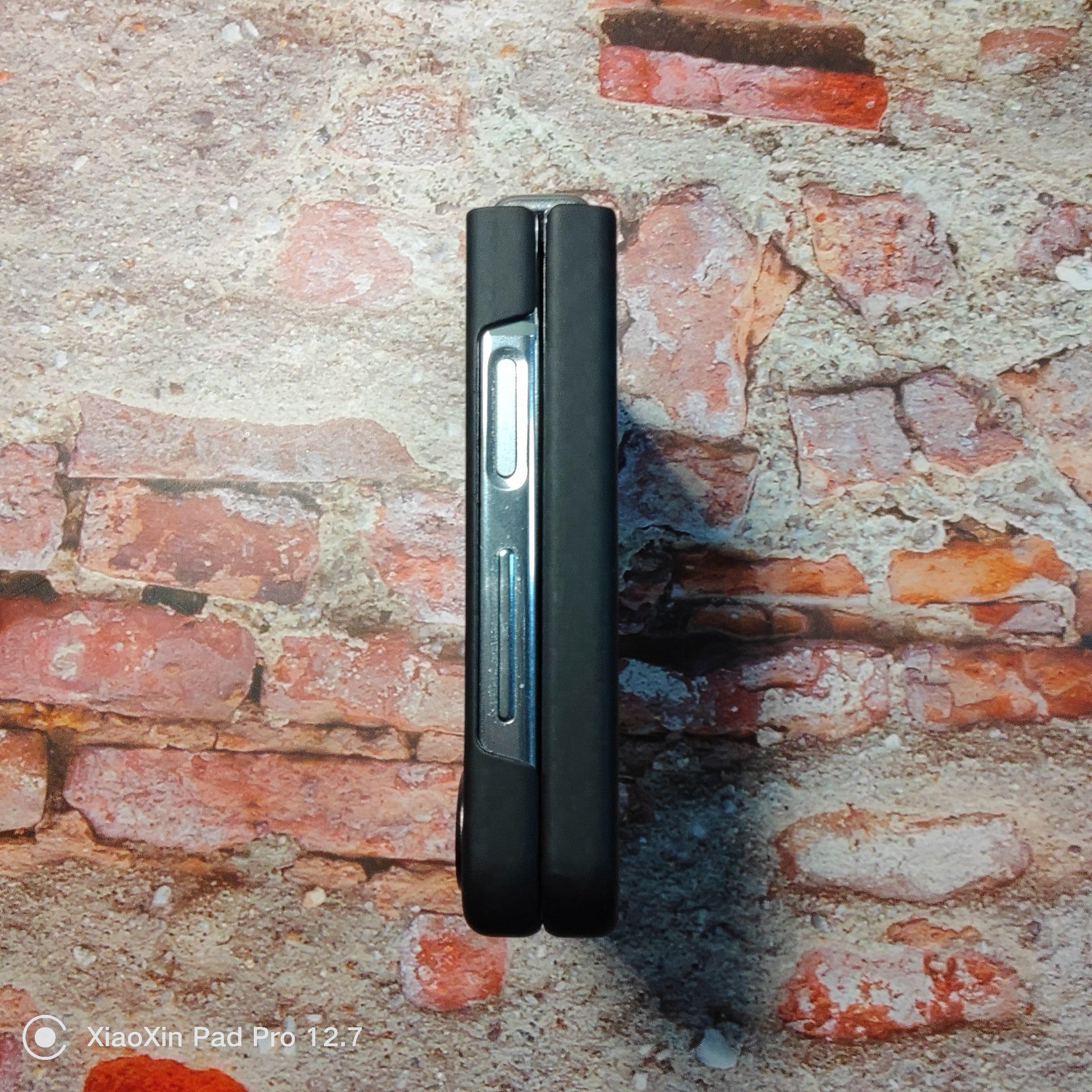 슈피겐 갤럭시 z플립5 울트라 씬에어 카본 아라미드 초슬림 휴대폰 케이스 블랙을 핸드폰에 끼우고 찍은 사진입니다.