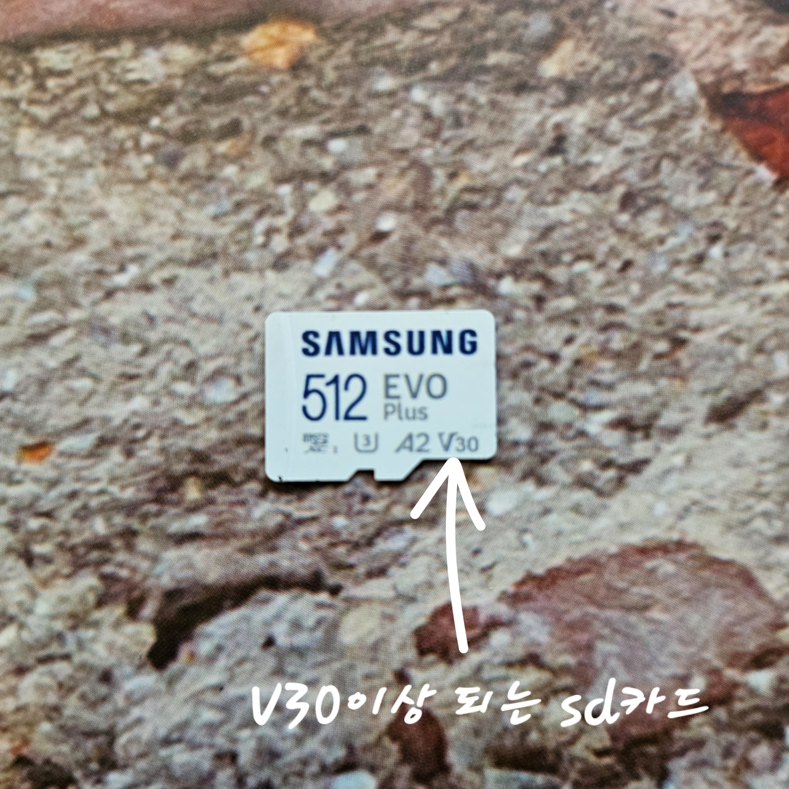 내장 메로리가 없어 마이크로 sd카드를 넣어야 되는데 속도가 v30이상 되는 것을 넣어야 됩니다.