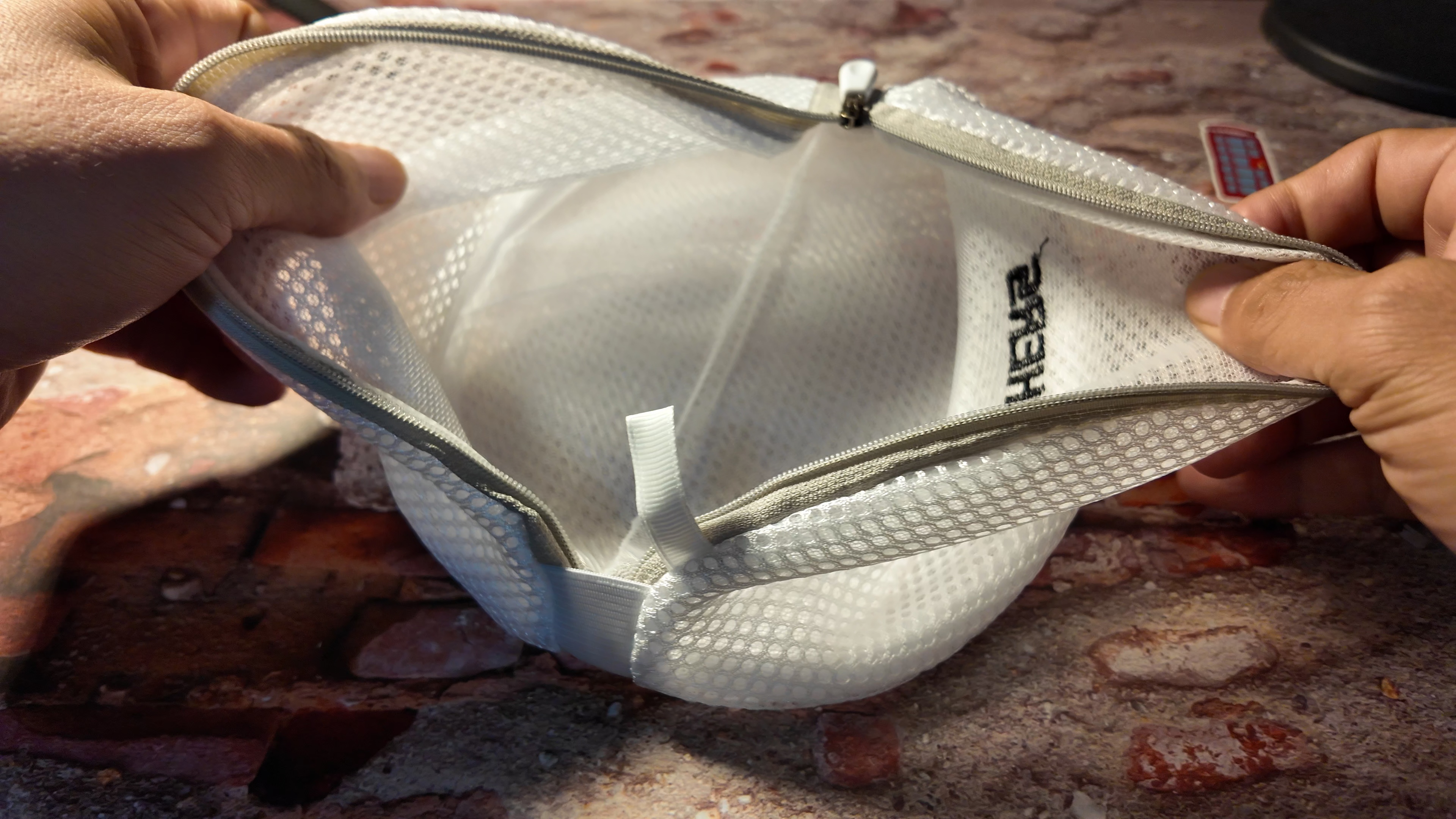 세탁망 밑에는 타원형 플라스틱 프레임이 있어서 망안에 팬티를 넣기 편합니다.