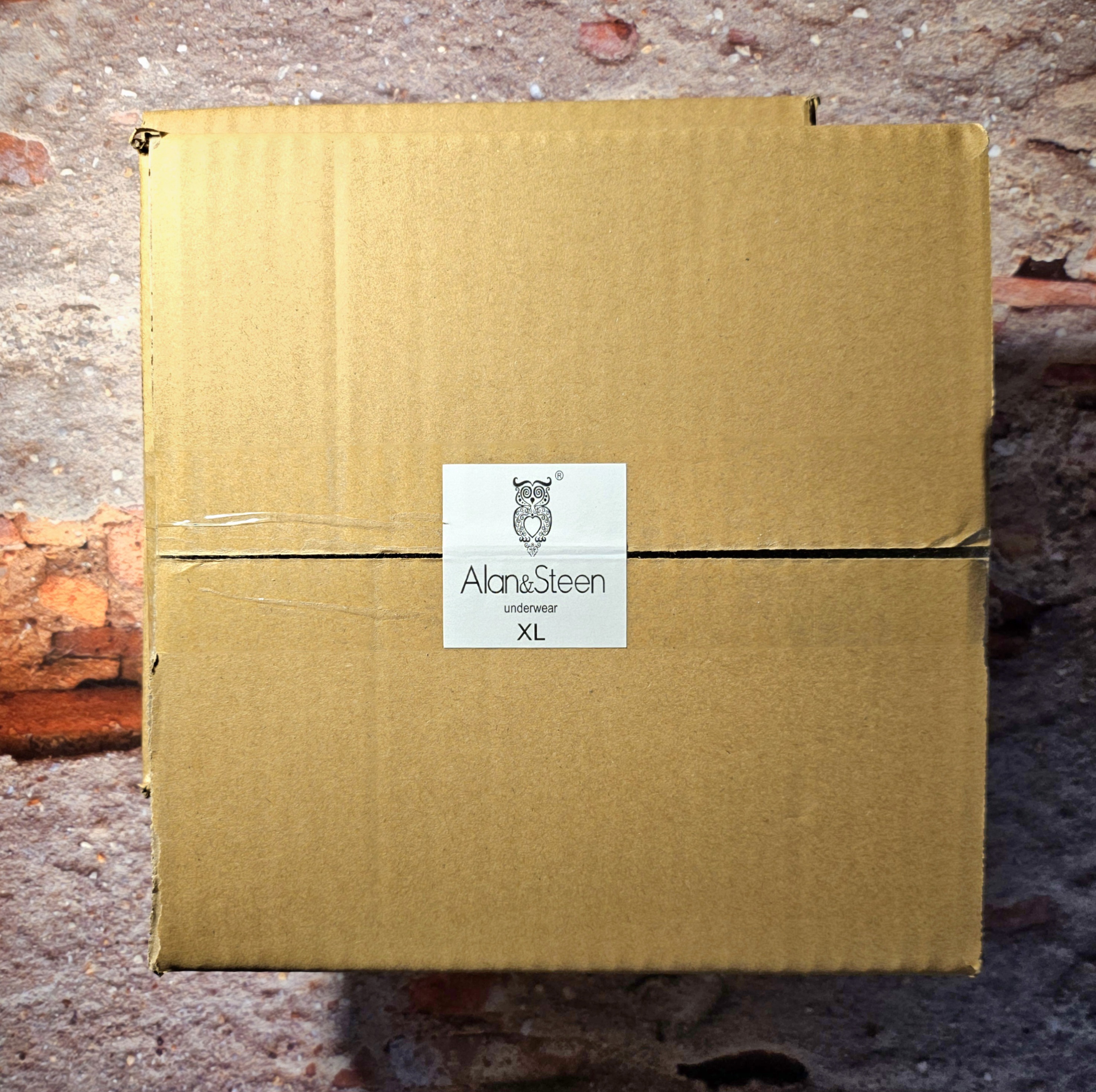 구성은 큰 박스 안에 2박스로 되어 있고 각각의 박스 안엔 [욜로코믹스 x 알렌앤스틴]80수 프리미엄 모달 남자 팬티 속옷 4개와 세탁망 1개가 들어 있습니다.