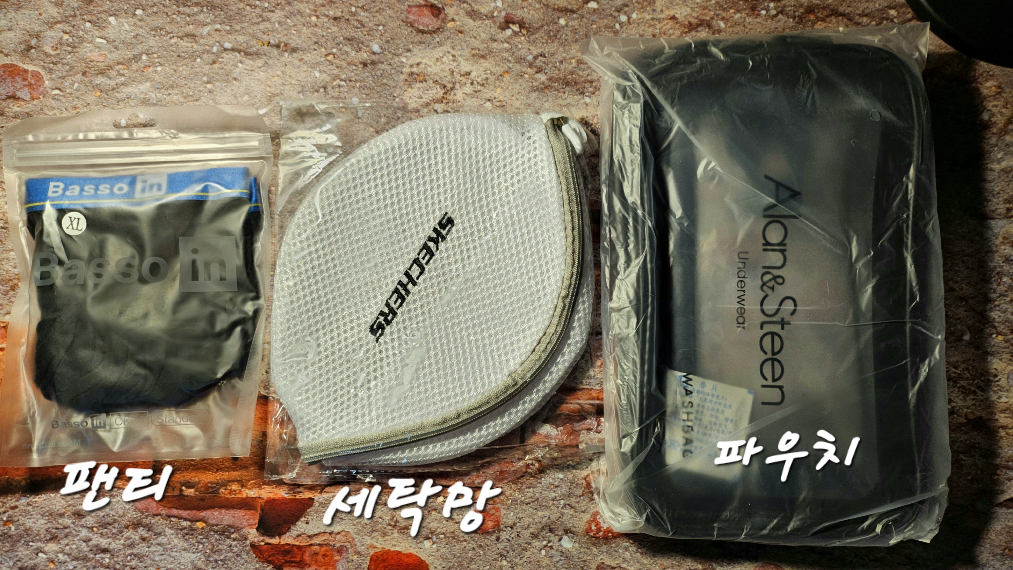구성은 팬티 8개+랜덤팬티 1개, 세탁망 3개, 👝파우치 1개입니다.