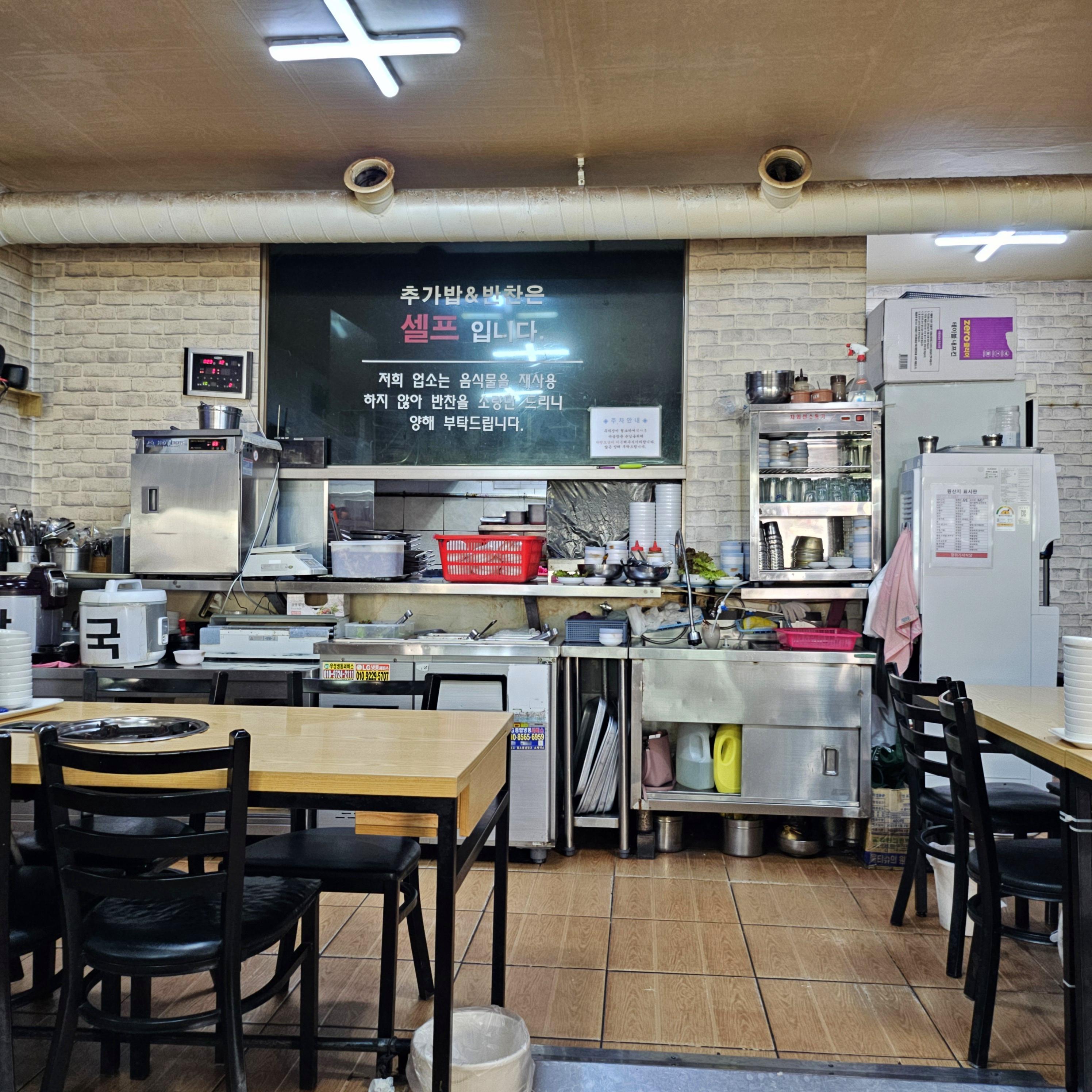 여기는 밥과 국을 셀프로 무제한 갖다 먹을 수 있어 좋습니다.