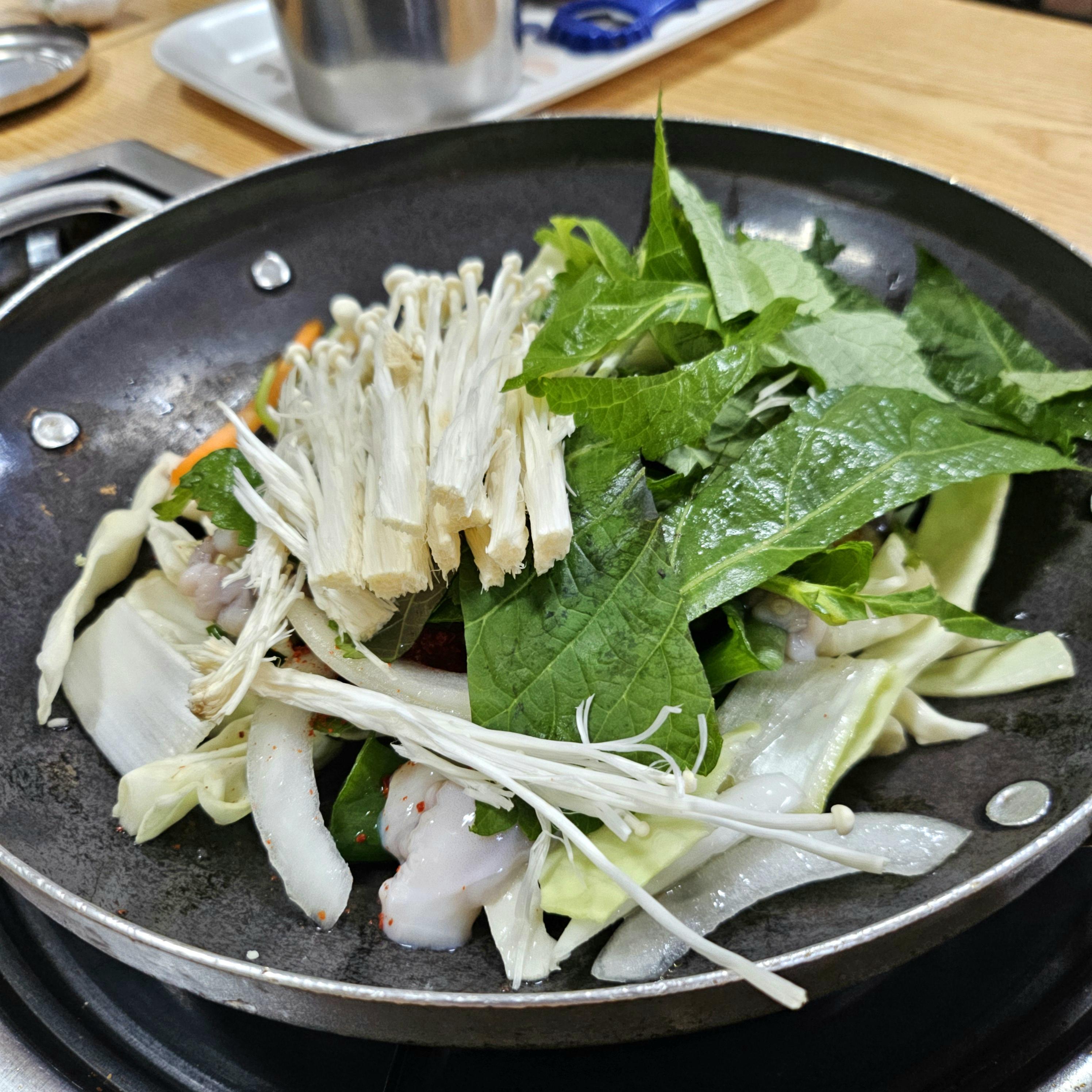 깻잎, 팽이버섯, 양파, 양배추등과 같이 나옵니다.