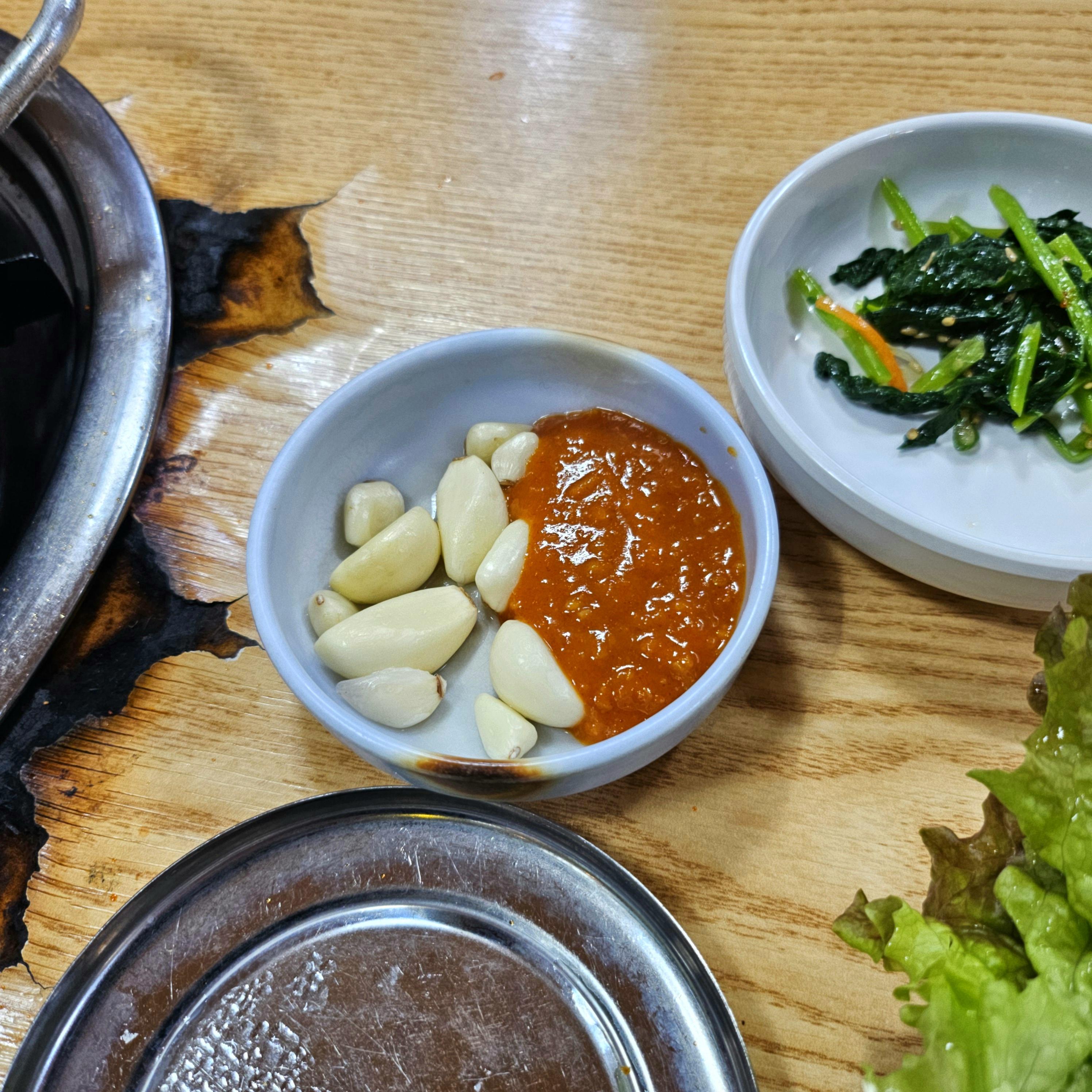 상추, 생마늘과 장은 셀프로 가져다 먹어야 됩니다.