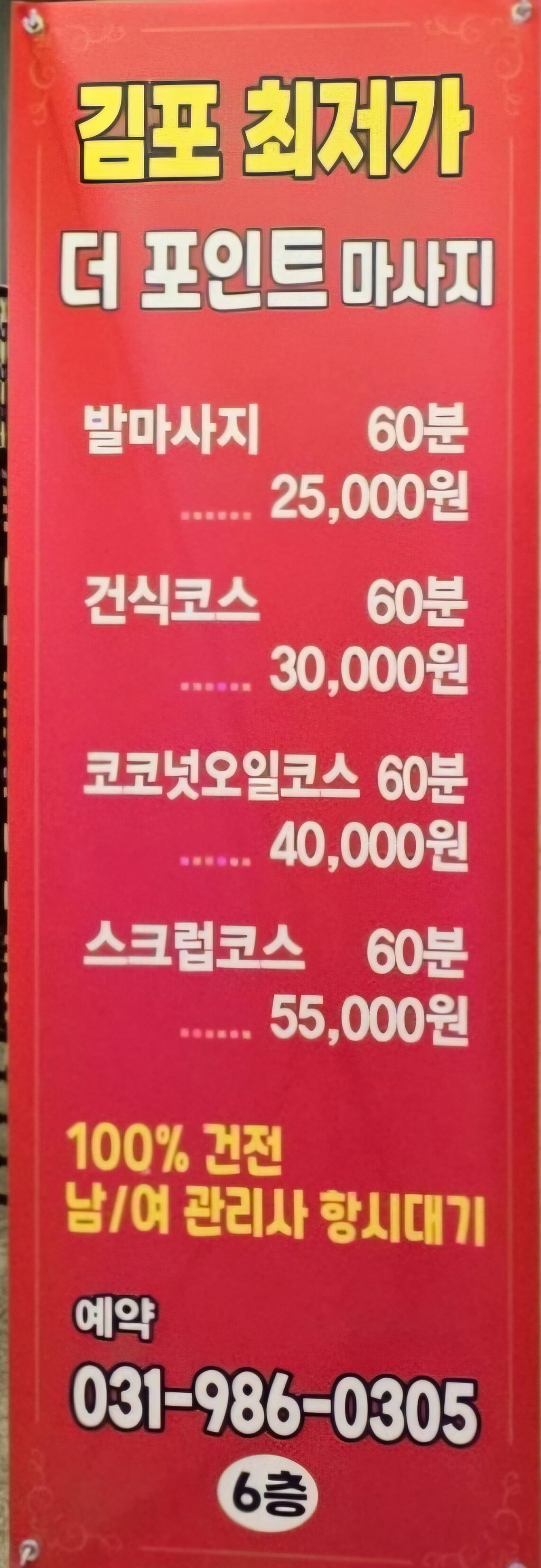 김포 구래동에서 저녁을 먹고 몸이 찌뿌둥해서 마사지를 받기로 마음먹었습니다. 길을 가다 우연히 발견한 에어배너에 가격이 2만 5천 원이라고 적혀 있어 갔습니다.