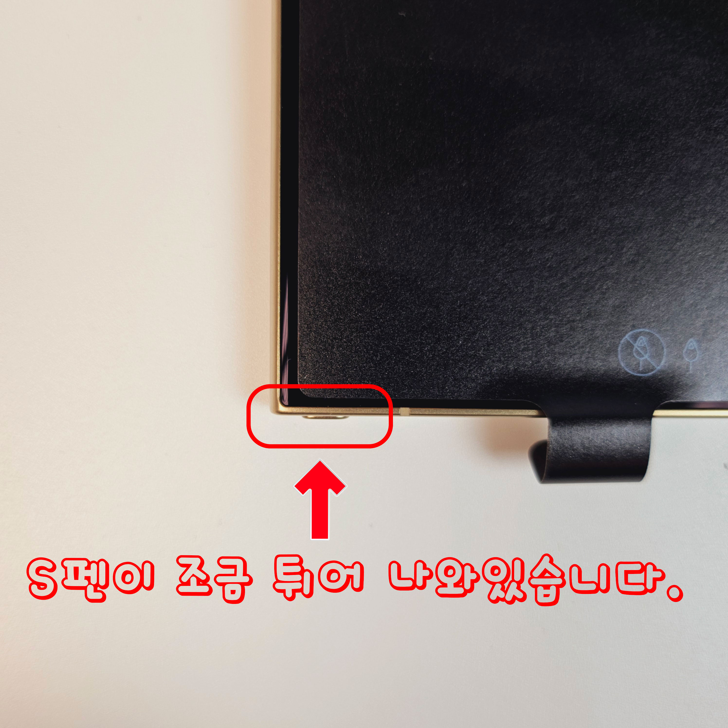 S펜을 넣으면 밑에 사진처럼 살짝 튀어나오는데 불량인지 모르겠습니다.