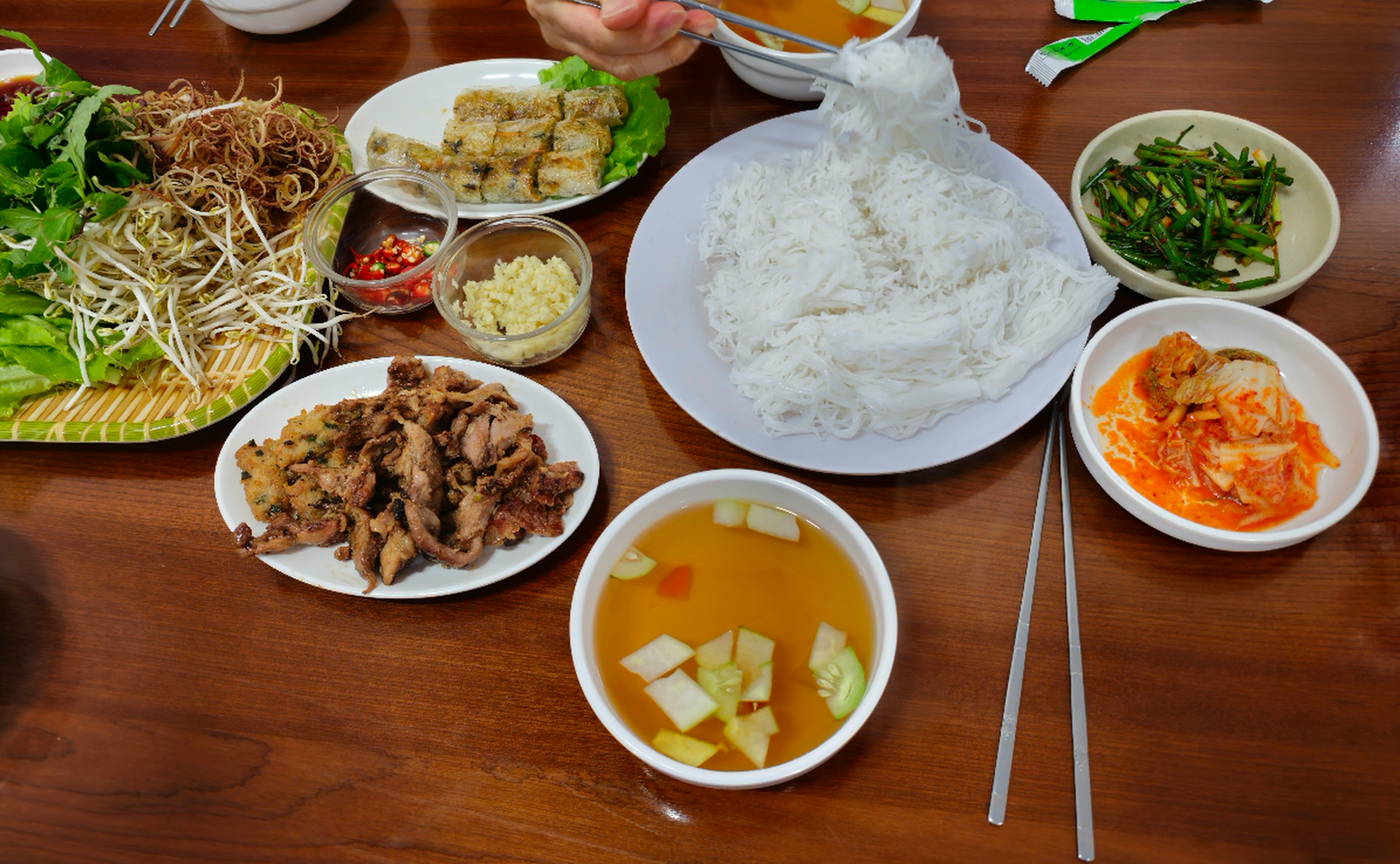 가는 길에 현지식 점심[쌀국수]를 먹었습니다. 면은 계속해서 리필 해주어서 배불리 먹었습니다.