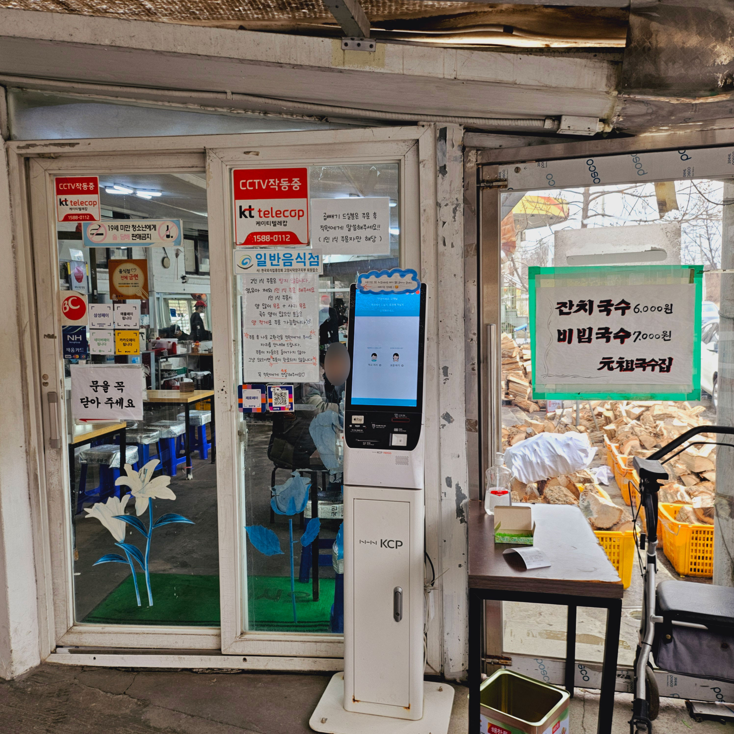통로를 지나 식당 입구에는 키오스크가 있습니다.