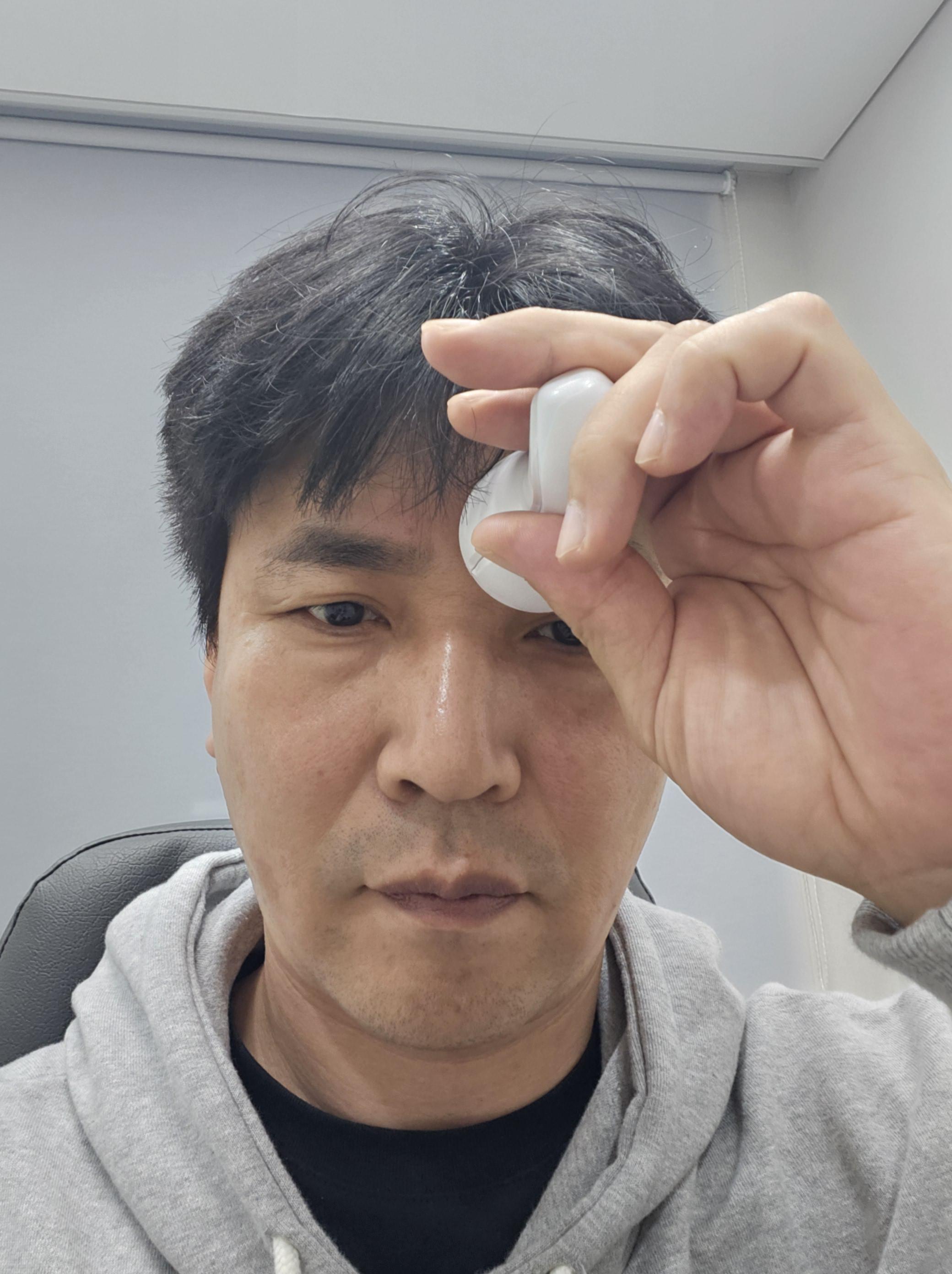 대기실에 앉아서 기다리니 시술 부위에 아프지 말라고 쿨러를 주어서 미간 쪽에 대고 있었습니다.