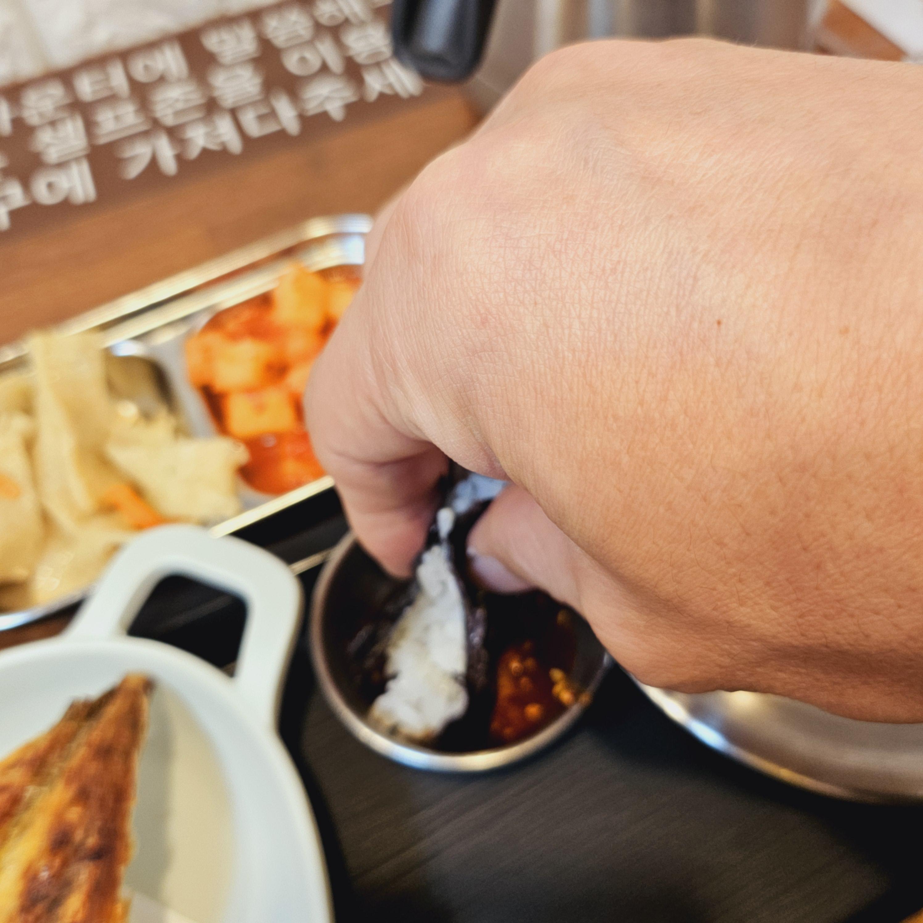 숟가락, 젓가락, 물 및 반찬을 셀프입니다.