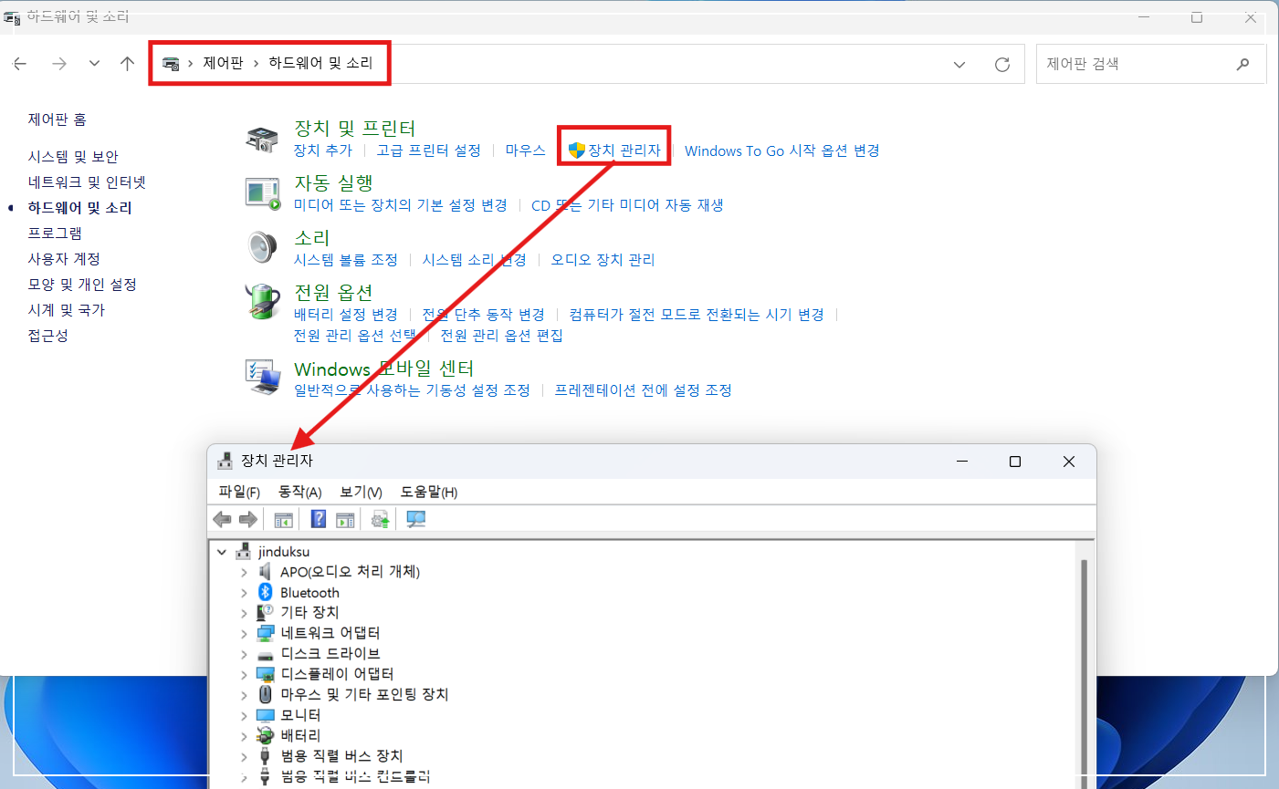 - 장치 관리자에서 문제가 있는 드라이버를 확인하고 업데이트합니다.