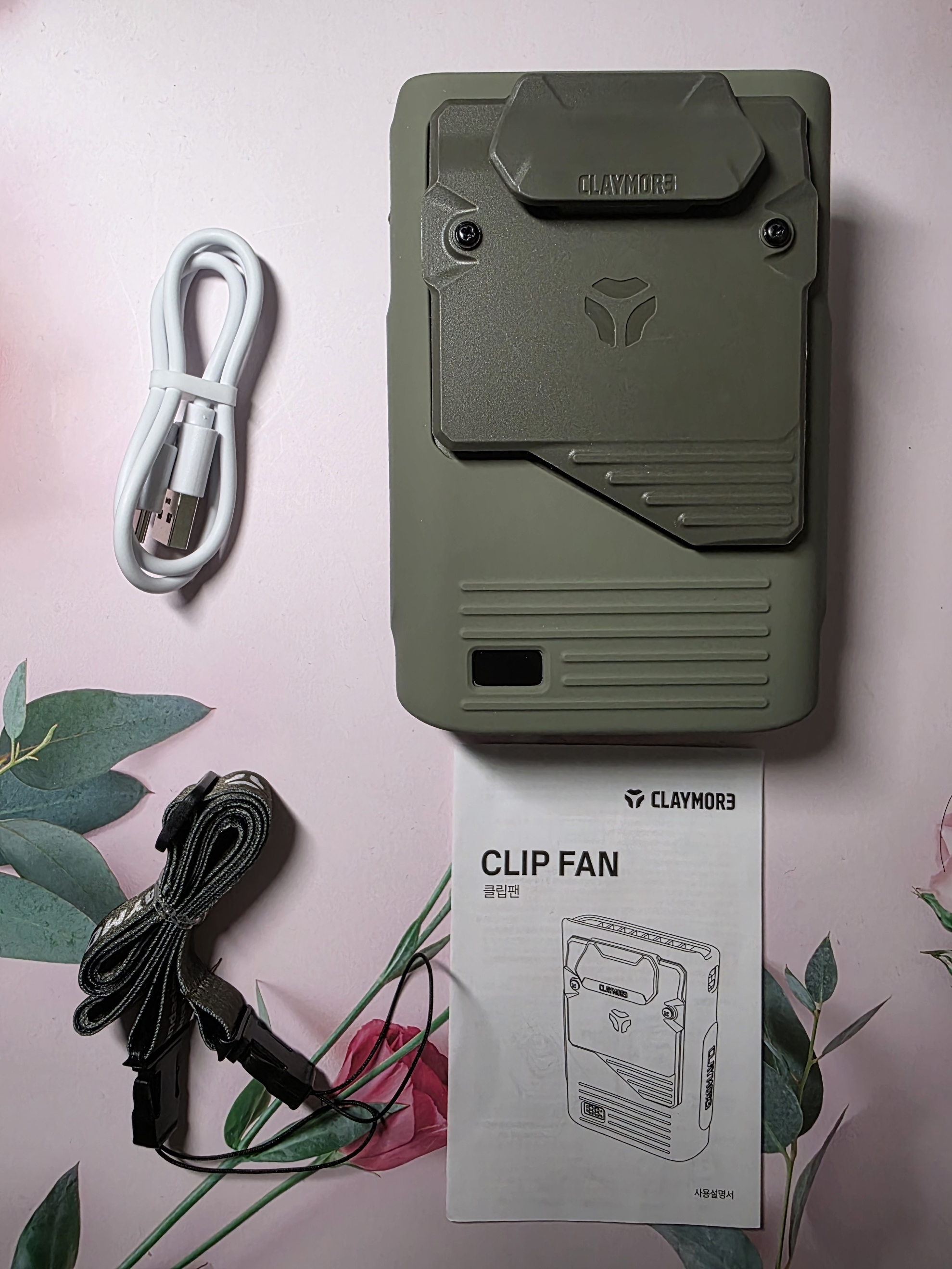 크레모아 클립팬 휴대용 손 선풍기 목 넥밴드설명서 및 충전 케이블