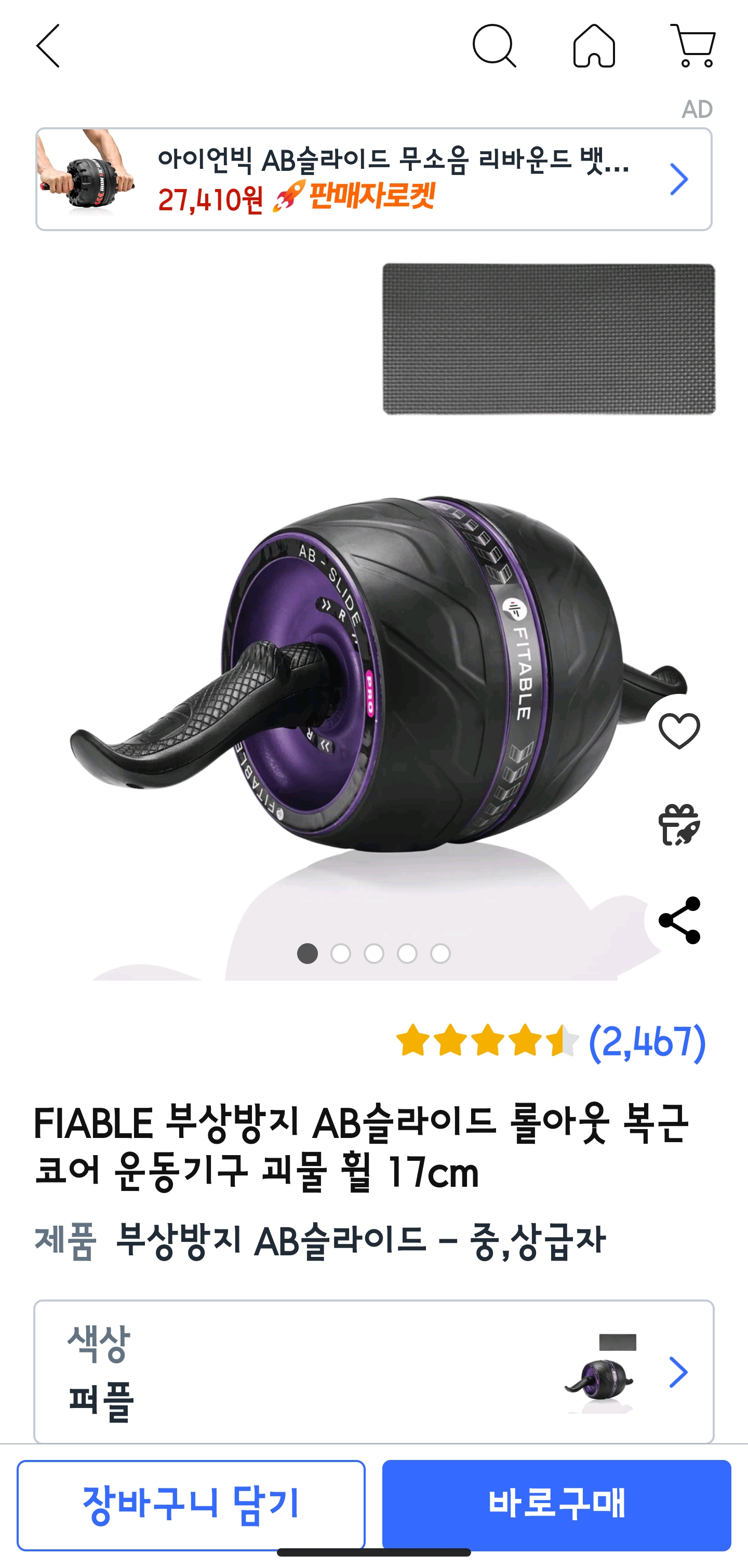 그래서 어떤 운동을 할까 고민하던 중에 AB슬라이드가 좋다고 해서 쿠팡에서 구매했습니다.
