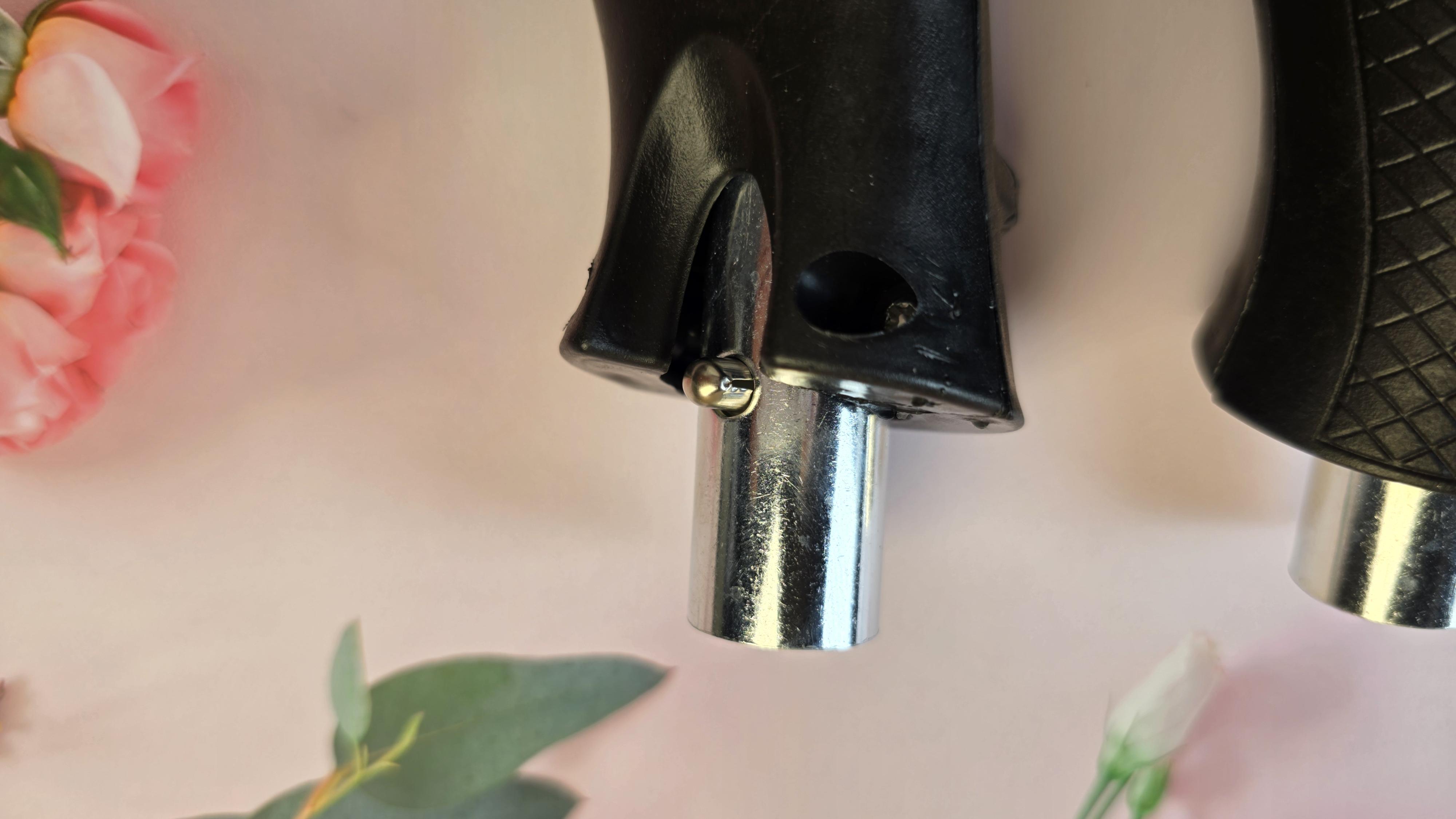 손잡이 결합 방법은 손잡이에 나와 있는 고정핀을 눌러 홈에 삽입하여 본체와 결합하면 됩니다.