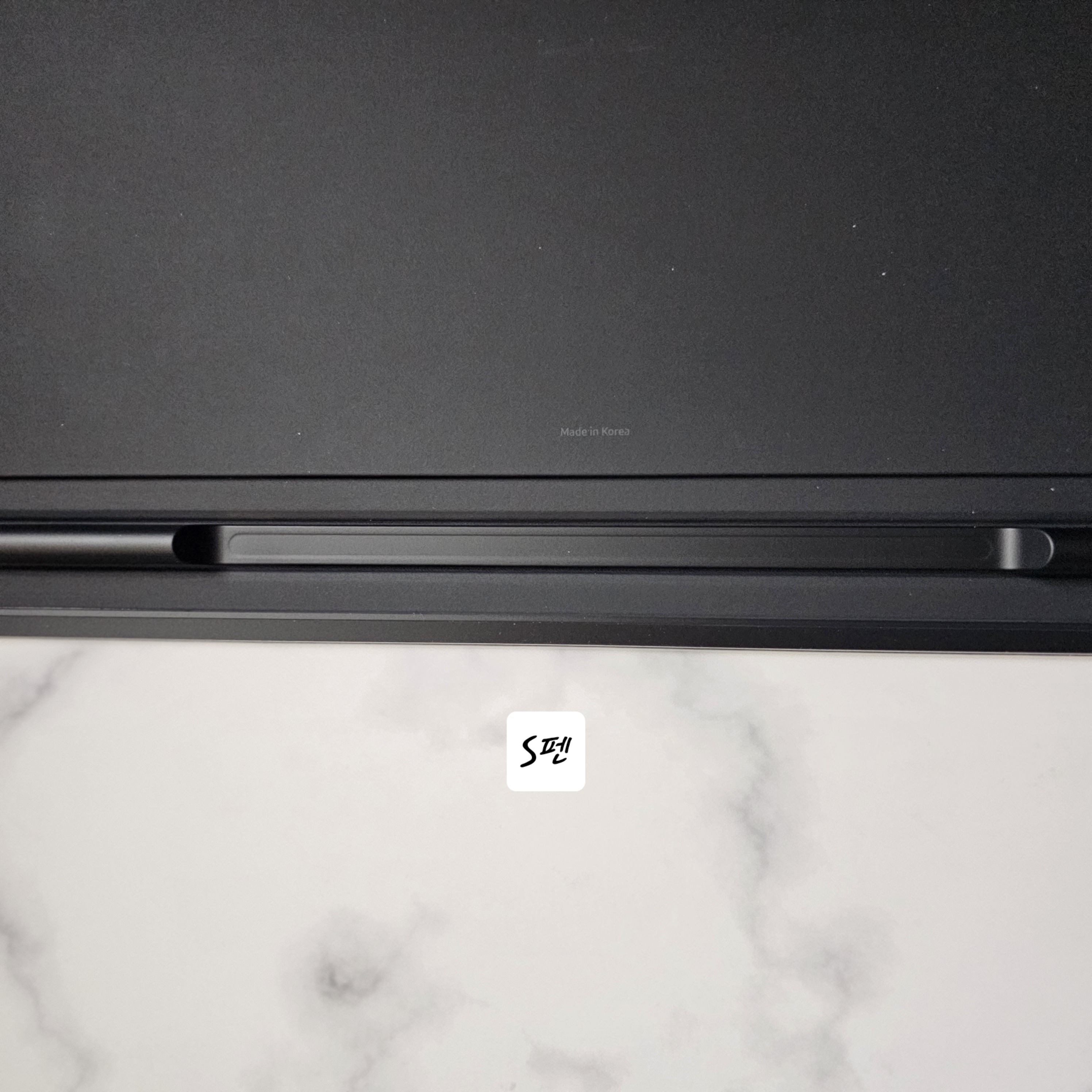 그리고 노트뷰커버 접히는 부분에 S펜을 넣을 수 있습니다. 자석으로 되어 있어 갖다 대면 딱 달라붙습니다.