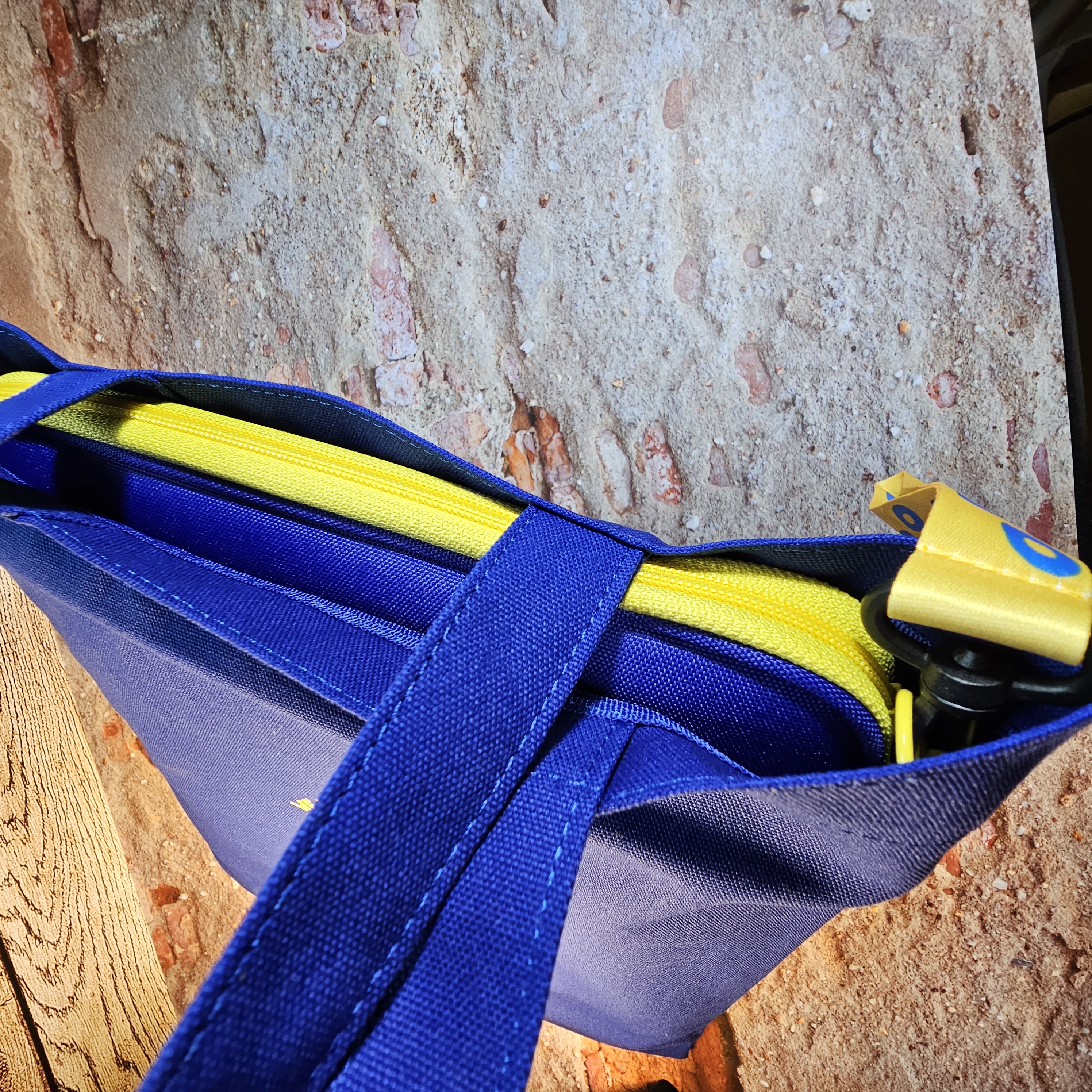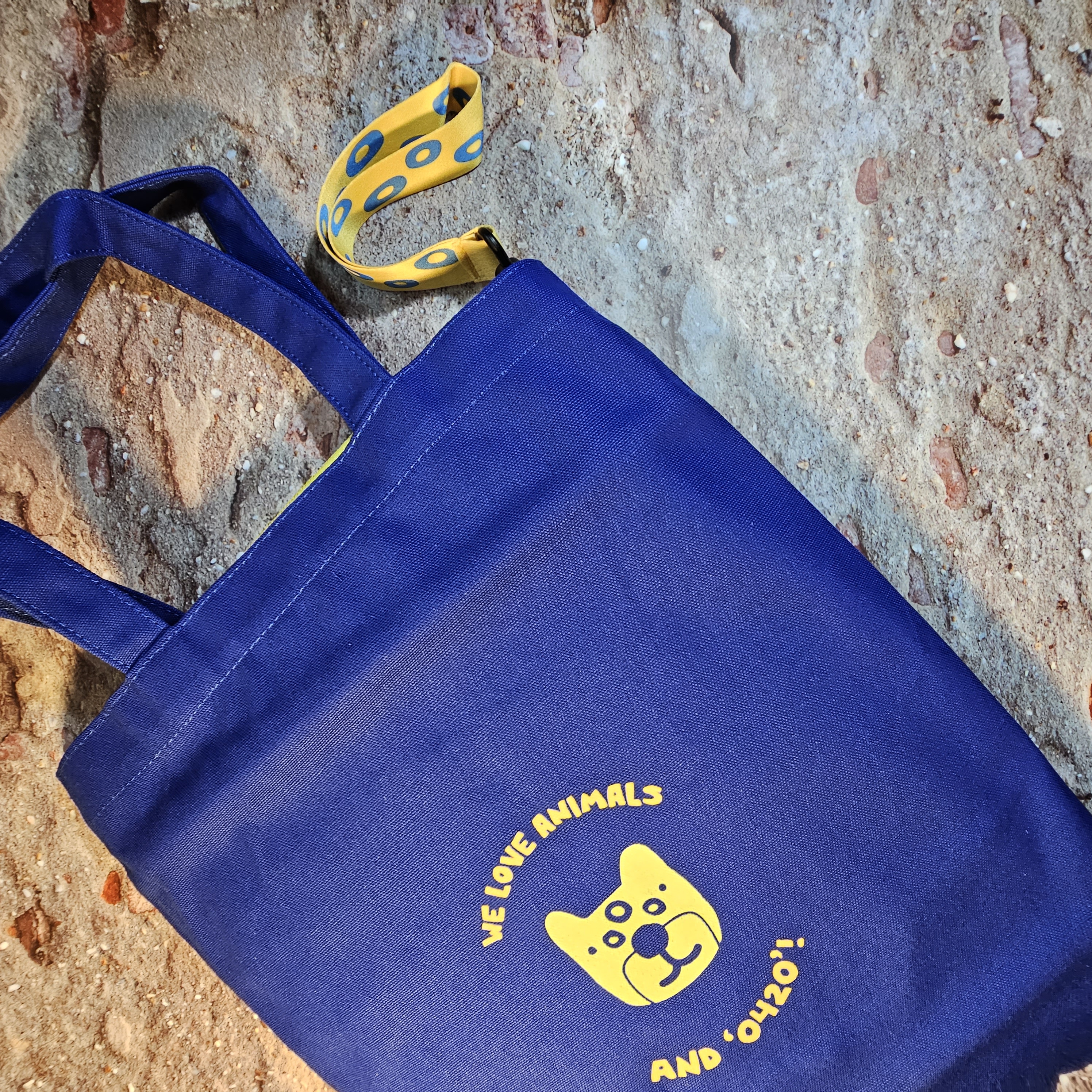 에코백 역시 파란색과 노란색으로 되어 있어 파우치와 잘 어울립니다.