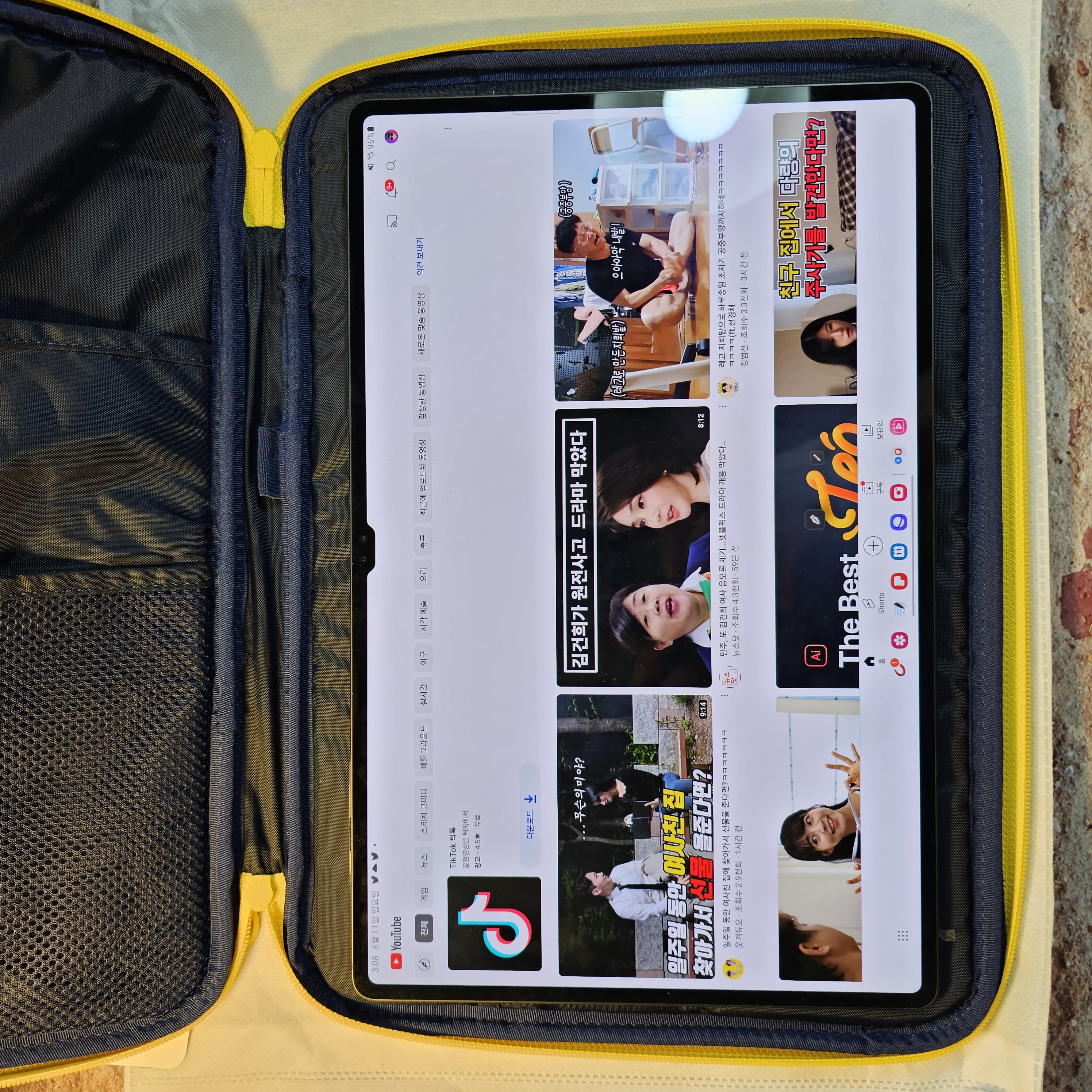 안에 갤럭시 탭 S8 울트라를 넣고 지퍼에