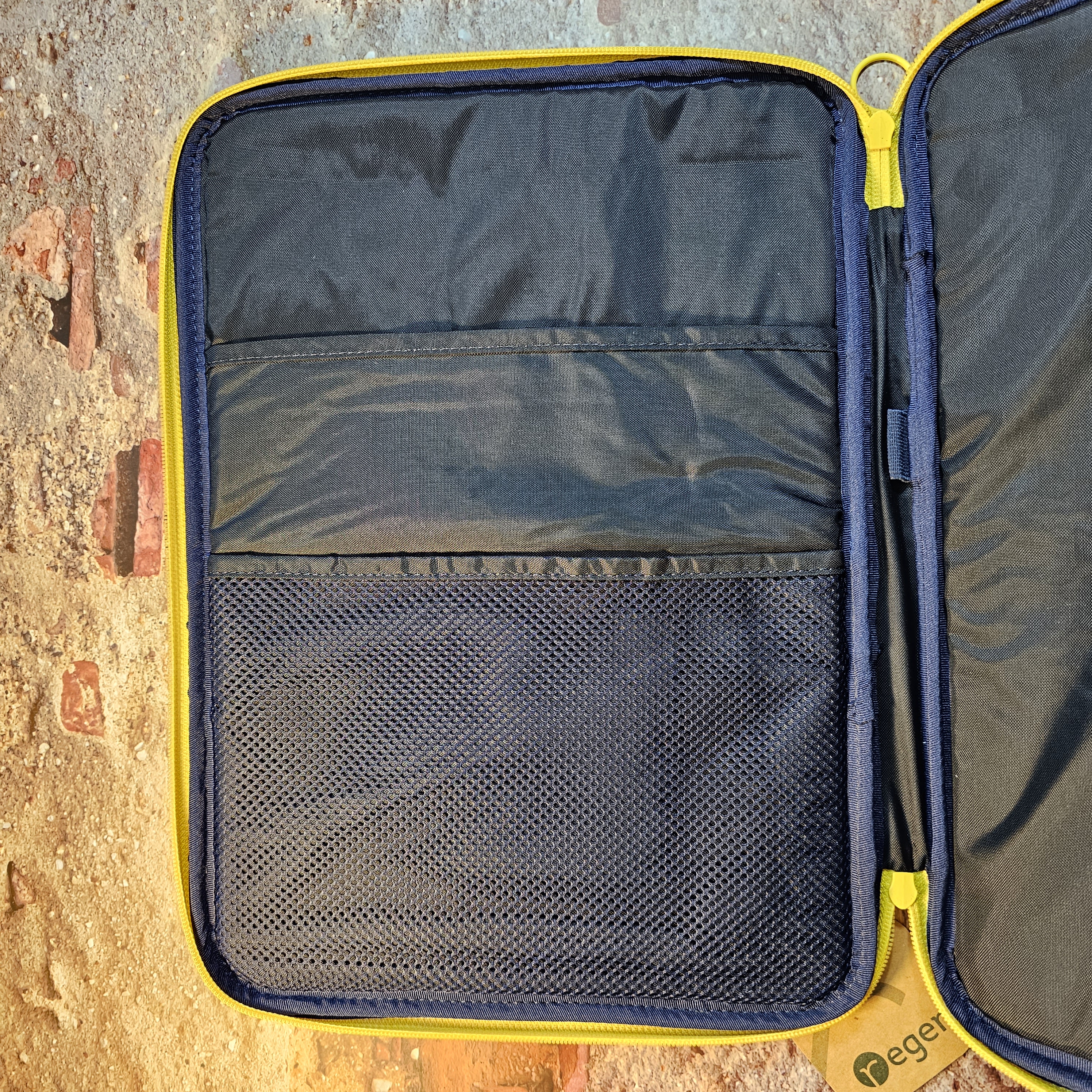 파우치 수납공간은 앞쪽 내부에 2개, 뒤쪽