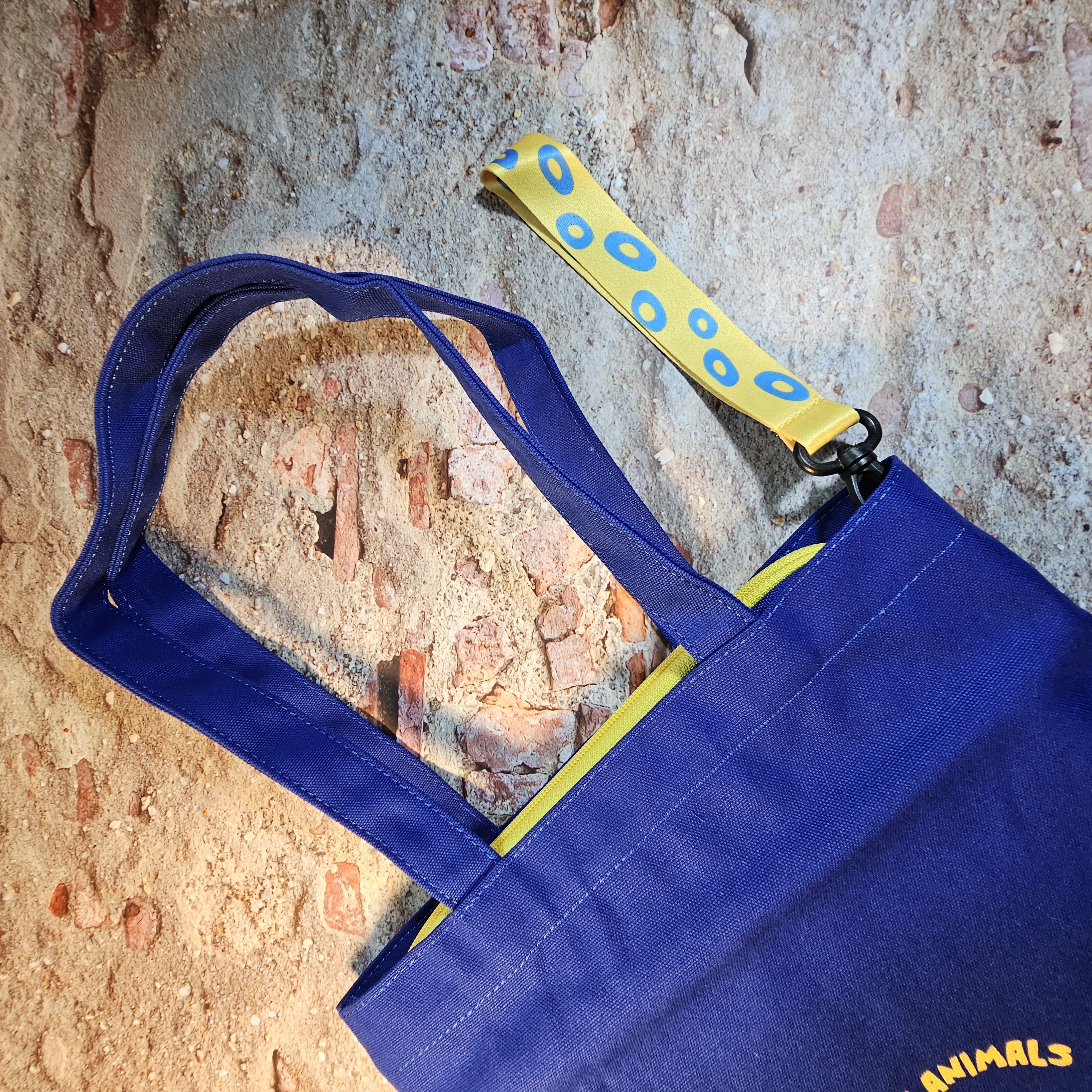 에코백 역시 파란색과 노란색으로 되어 있어 파우치와 잘 어울립니다.