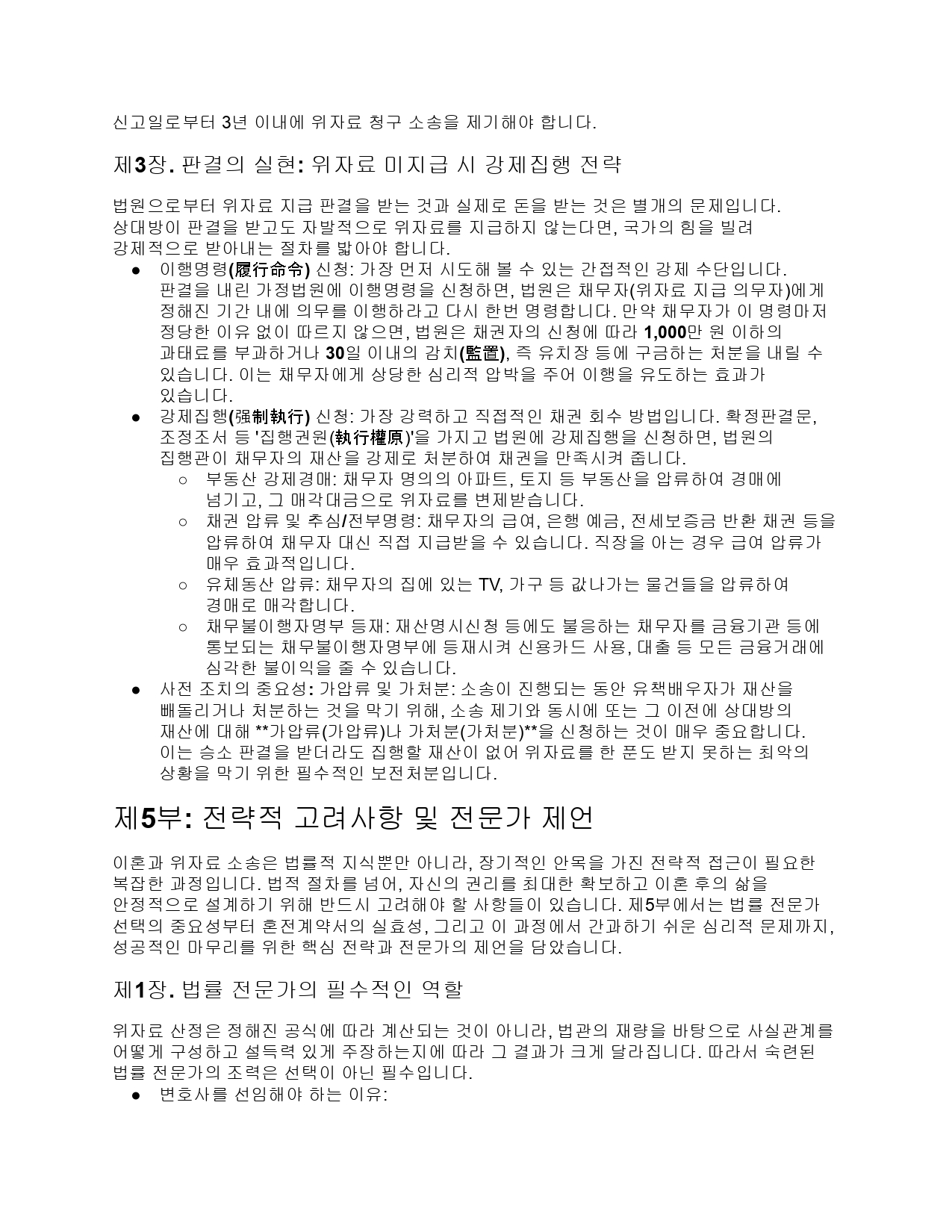 판결 후에도 지급하지 않으면, 법원을 통해 급여, 예금, 부동산 등을 압류하여 강제적으로 위자료를 회수할 수 있습니다.