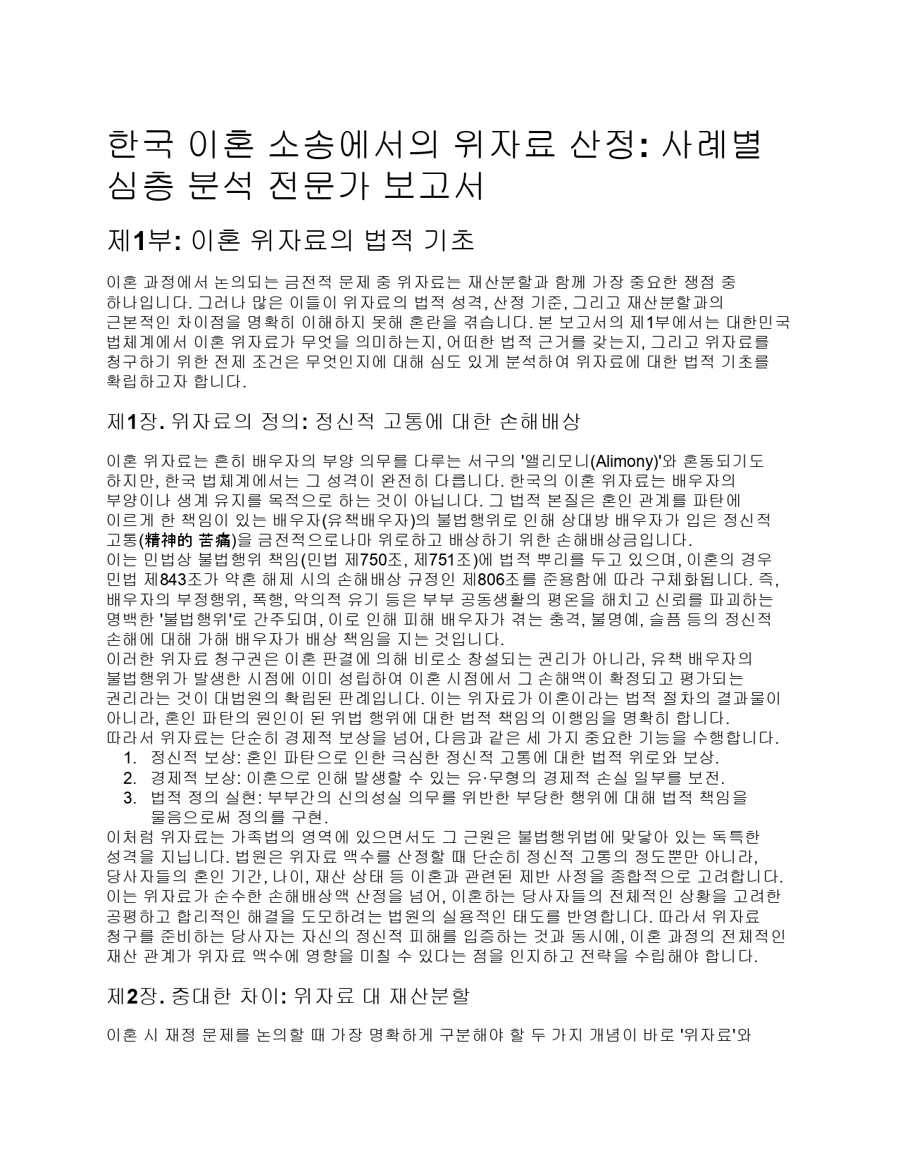 오늘은 구글 제미나이에서 Deep Reseach[심층적인 보고서 얻기]에서 "이혼 할때 위자료 계산은 어떻게 하나요? 각각의 케이스별로"라고 질문을 했습니다.