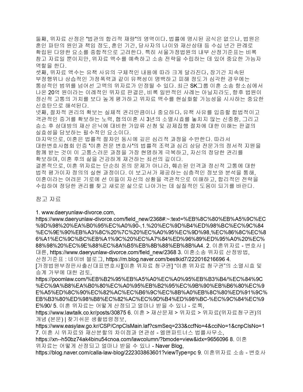 ※ 최근 SK그룹 이혼 소송에서 20억원의 위자료가 인정되는 등, 유책성이 매우 크고 재산이 많은 특수 사건의 경우 위자료가 상향될 수 있습니다.