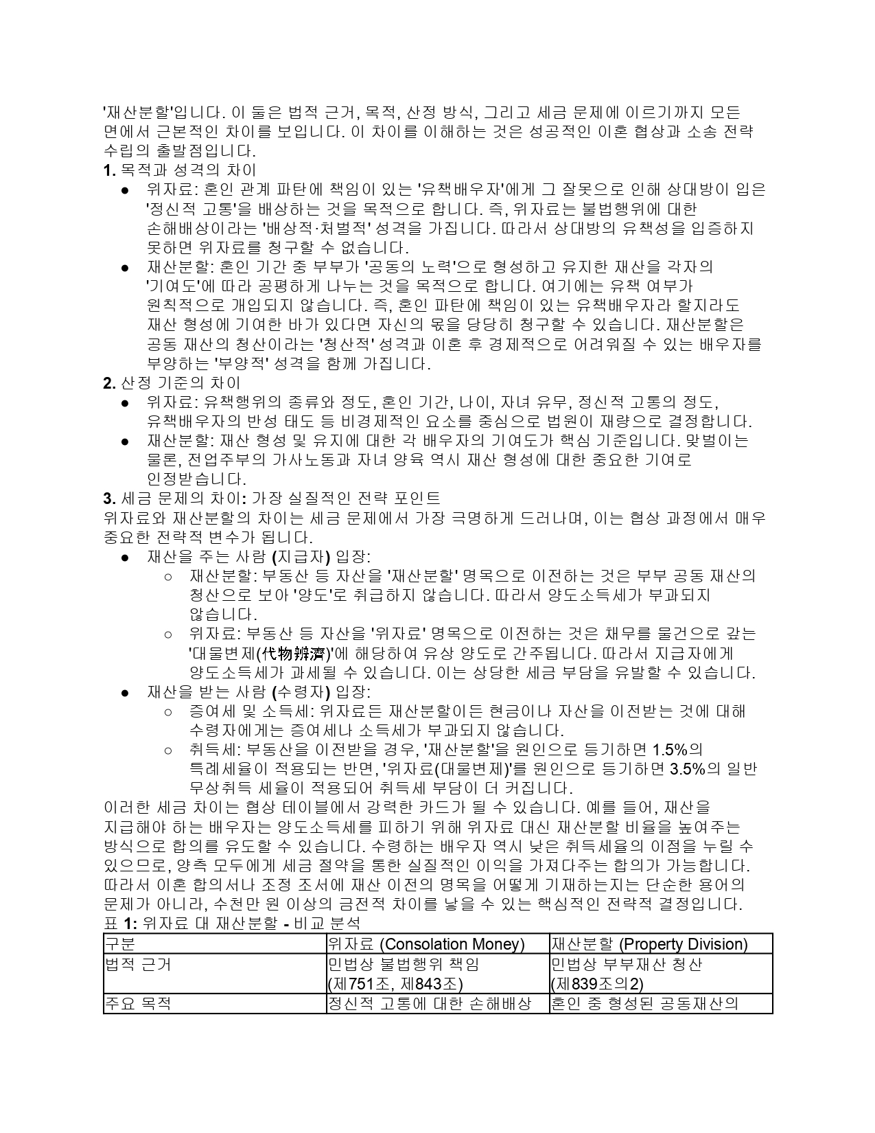 이혼 시 금전 문제를 다룰 때 가장 먼저 명확히 구분해야 할 두 가지 개념입니다. 목적과 성격, 세금 문제까지 모든 면에서 근본적인 차이가 있습니다.