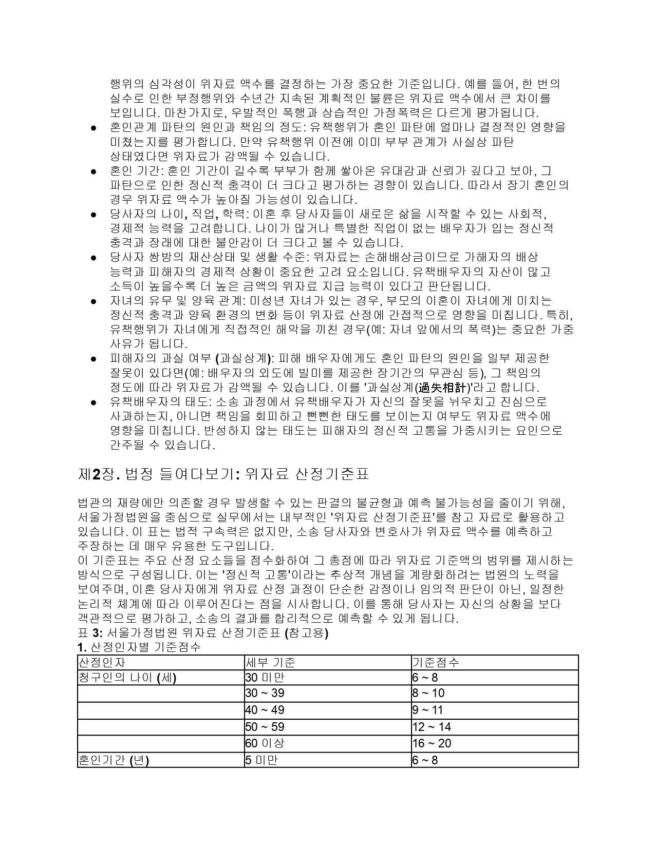 서울가정법원의 위자료 산정기준표를 바탕으로 제작된 참고용 계산기입니다. 실제 판결은 여러 복합적인 사정을 고려하여 달라질 수 있습니다.